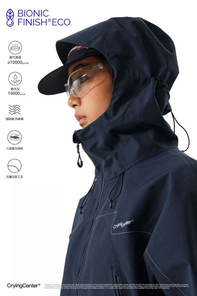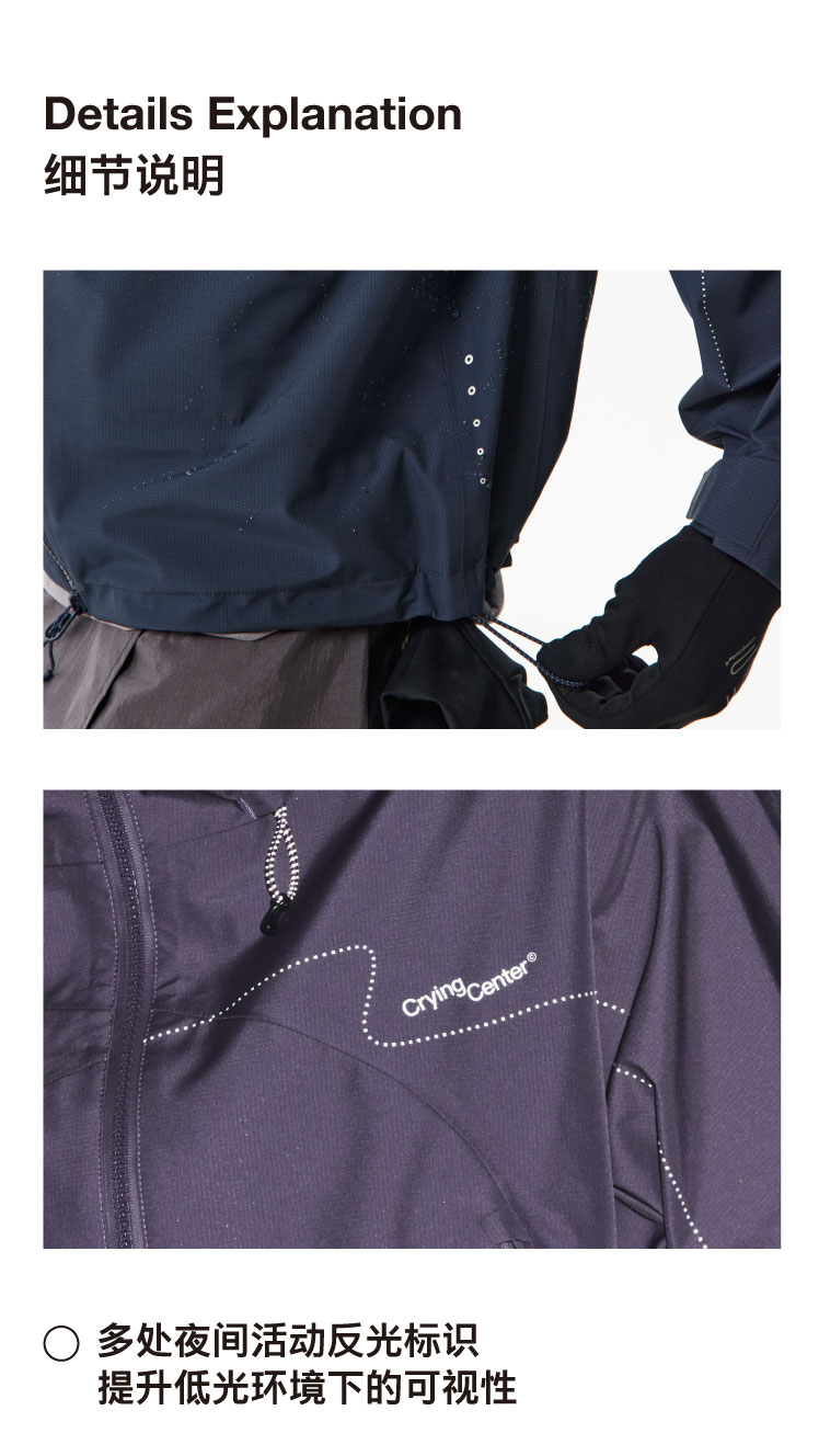 CryingCenter户外防水硬壳压胶反光冲锋衣连帽夹克外套徒步 短款