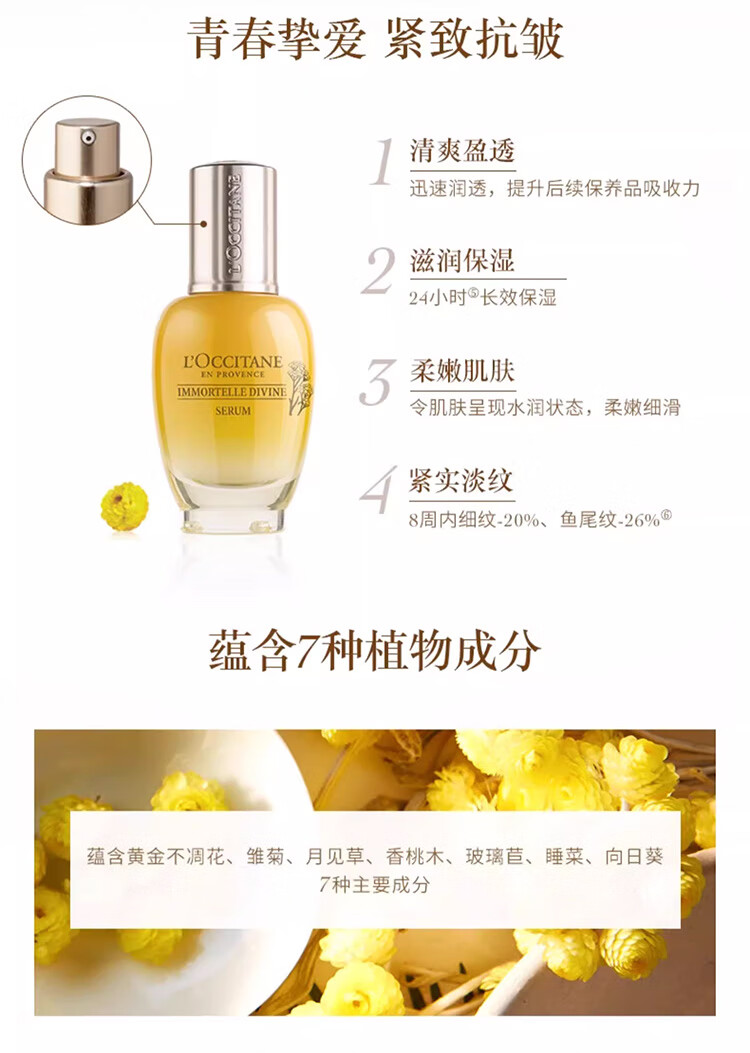 欧舒丹黄蜡菊赋颜御龄精华液30ml滋润温和提拉紧致生日送女士护肤礼物 心选到家