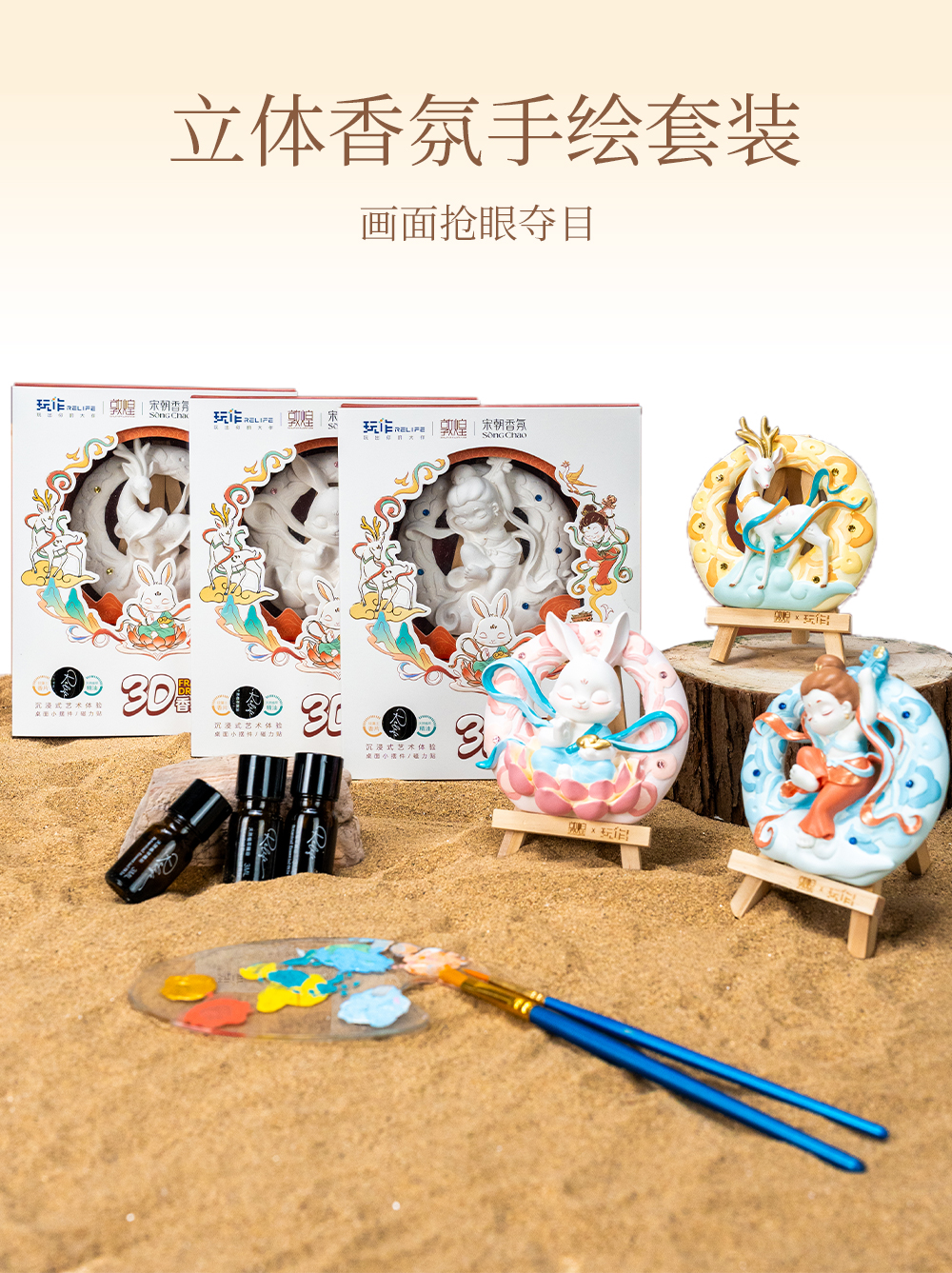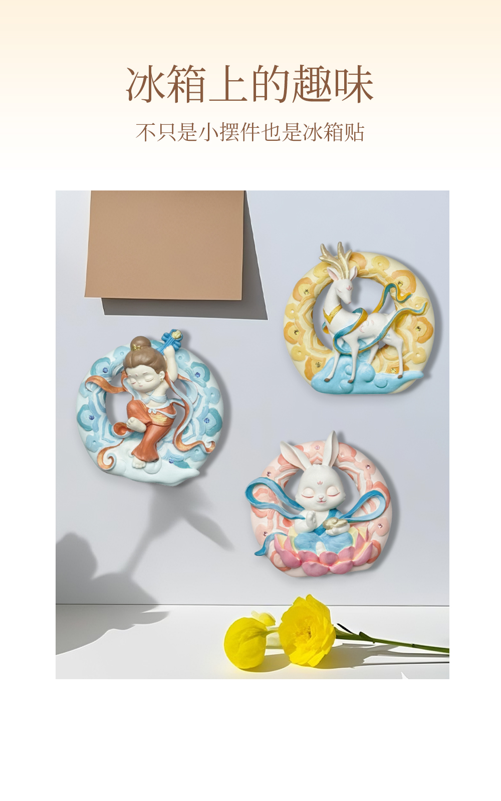 敦煌研究院 【敦煌浮雕石膏香氛冰箱贴】创意diy摆件涂色石膏扩香摆件
