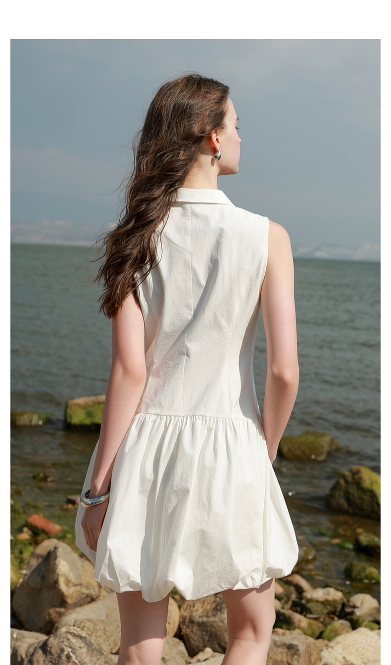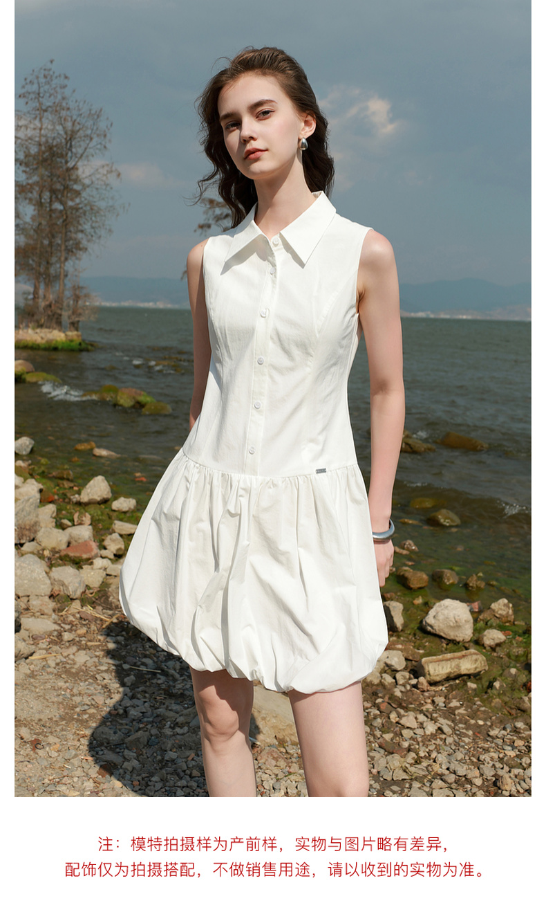 三彩2025夏季新款花苞连衣裙无袖衬衫领短裙设计感A字裙甜美M