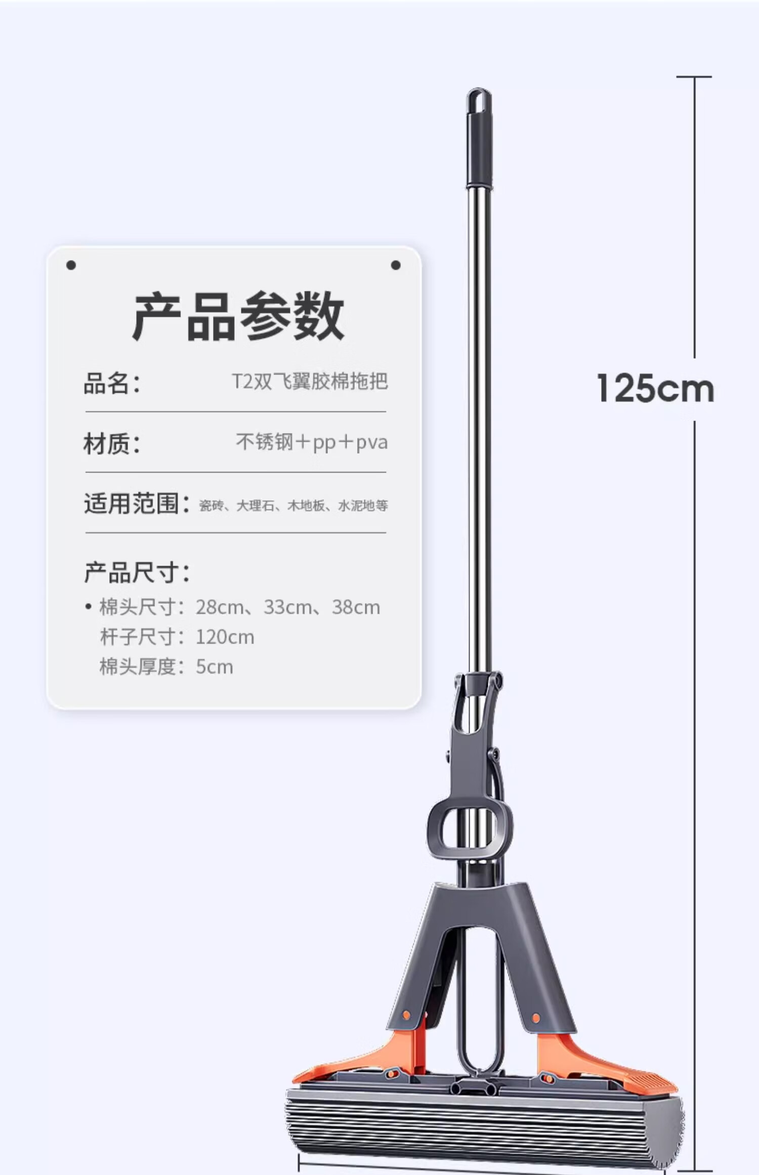 佳帮手海绵拖把家用一拖净2023款吸水对折式免手洗胶棉头地拖布