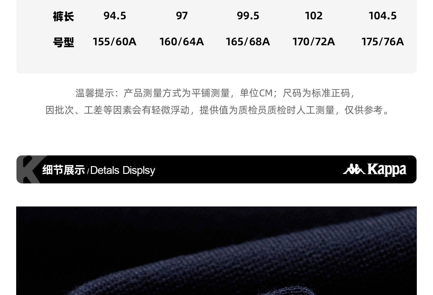 Kappa 运动长裤男士新款休闲束脚裤深蓝色卫裤裤女K0G22AK03