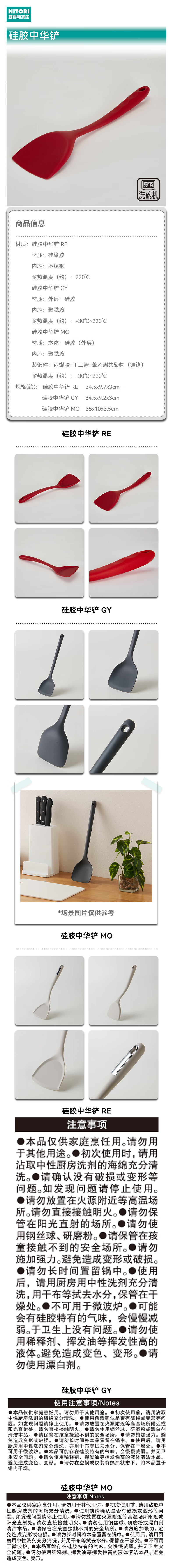 NITORI宜得利家居 圣诞氛围洗碗机可用炒菜不易伤锅铲子硅胶中华铲漏铲