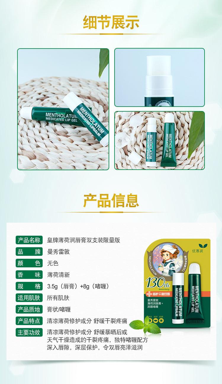 曼秀雷敦皇牌薄荷润唇膏双支装