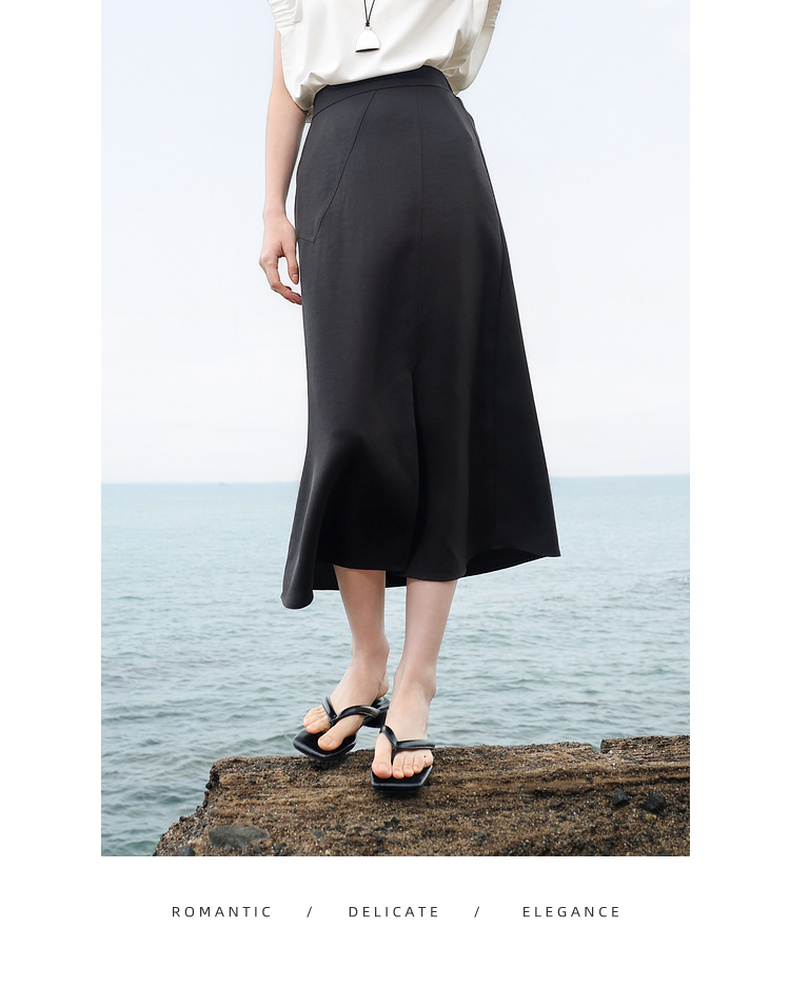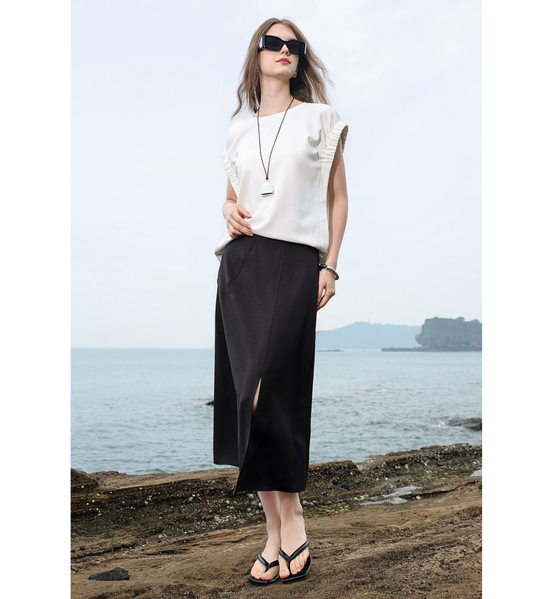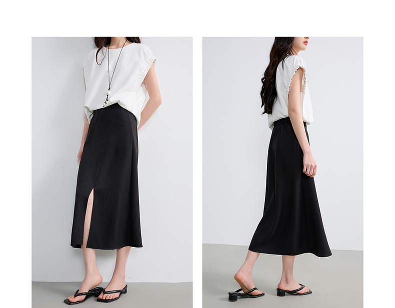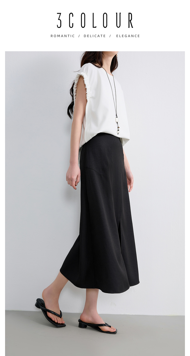 三彩2025夏季新款高腰开叉半身裙A字裙长裙垂感显瘦简约M