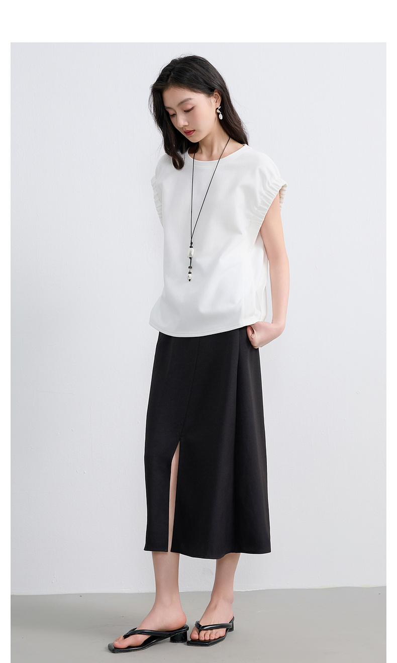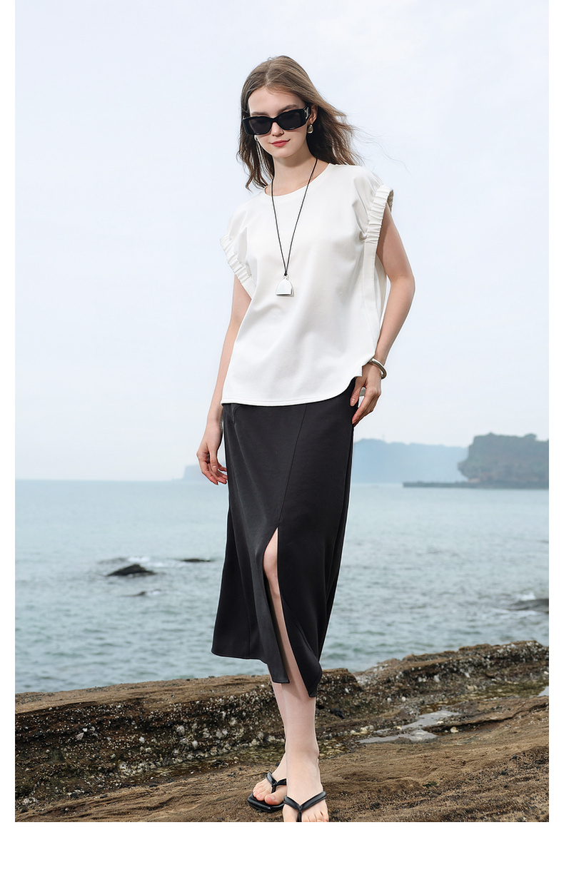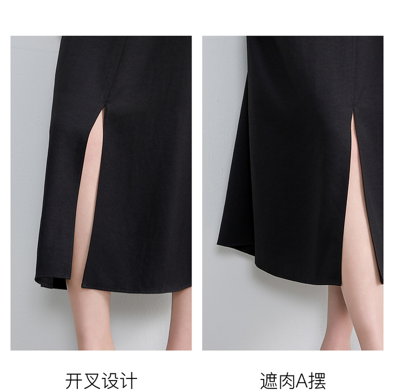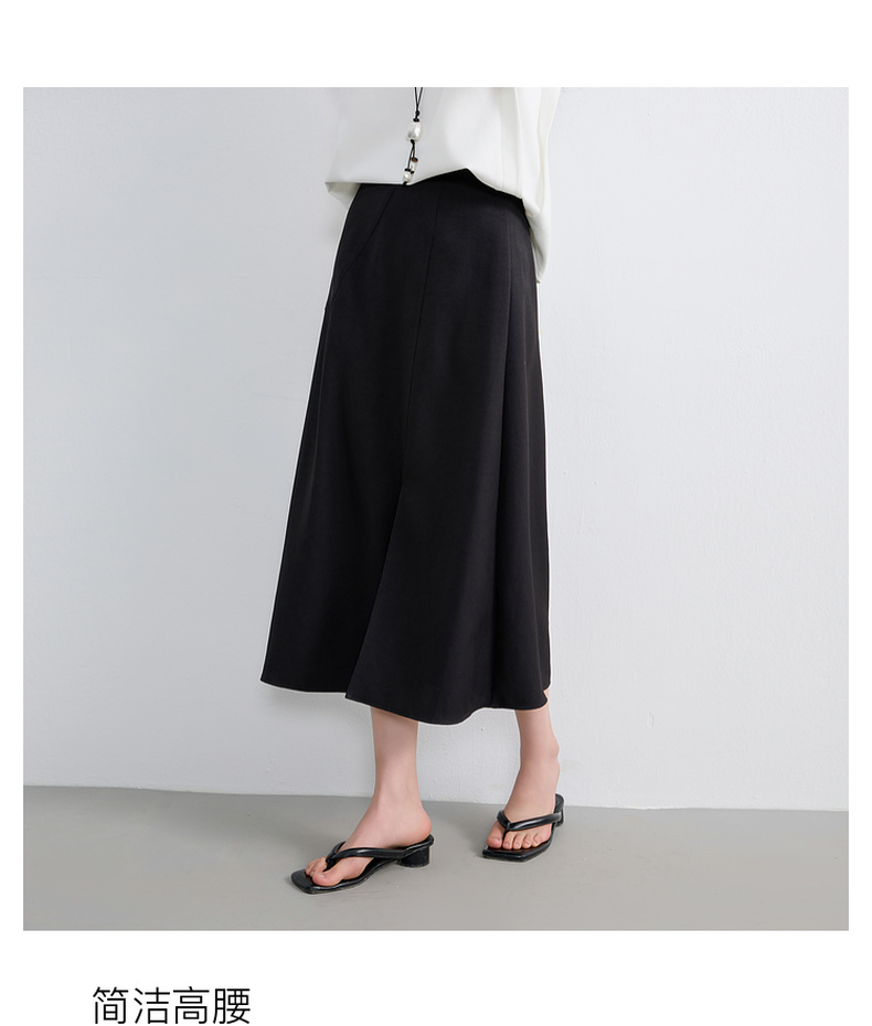 三彩2025夏季新款高腰开叉半身裙A字裙长裙垂感显瘦简约M