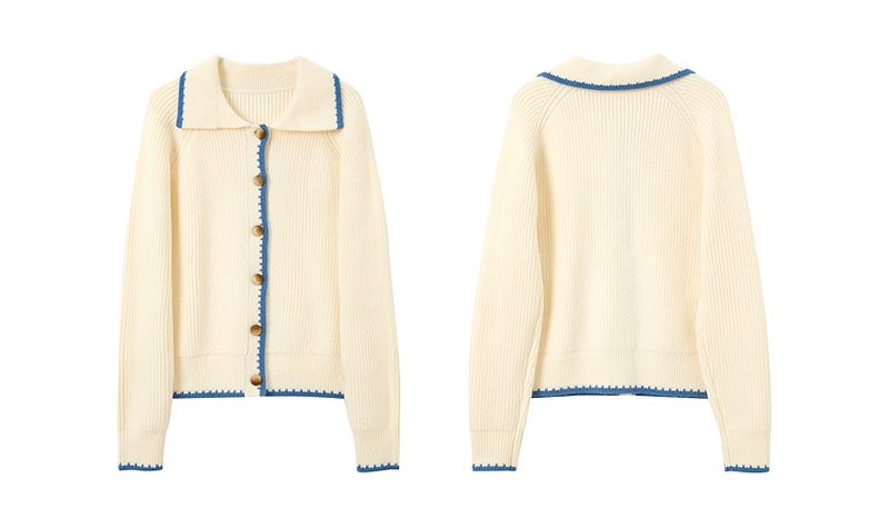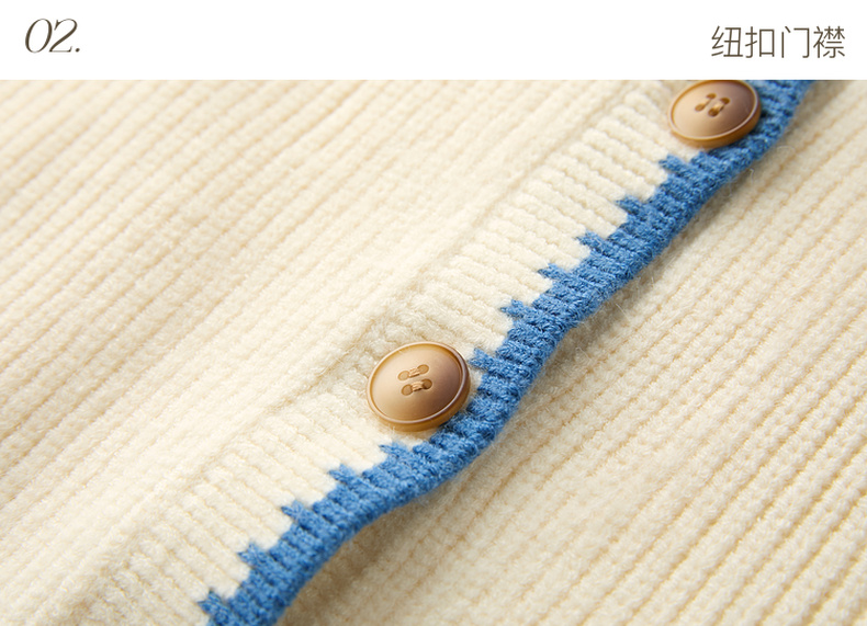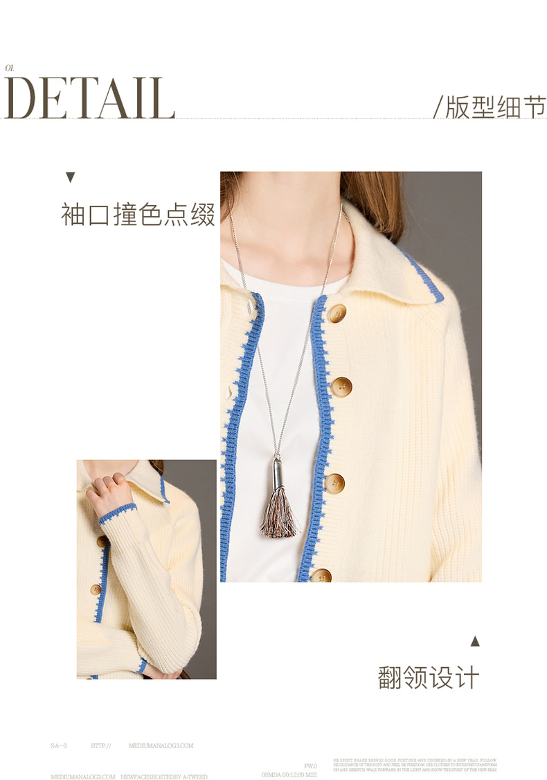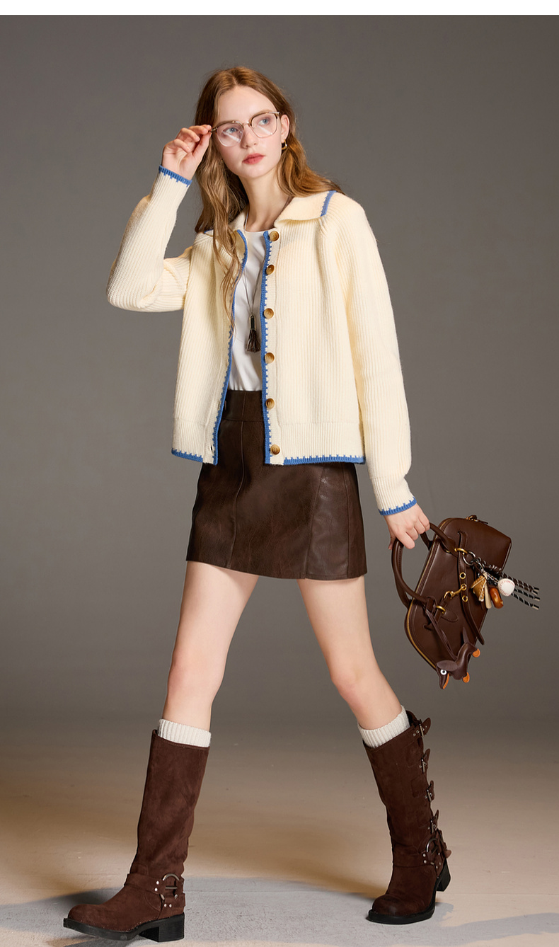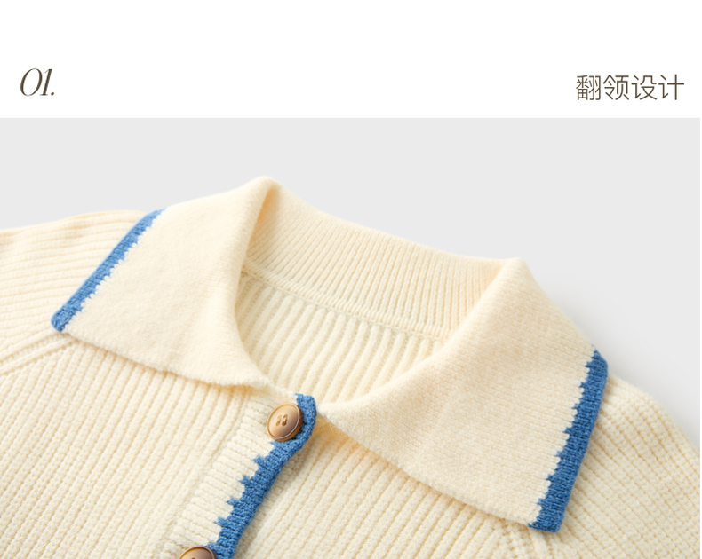 三彩2025冬季新款翻领针织衫长袖单排扣上衣开衫休闲简约M