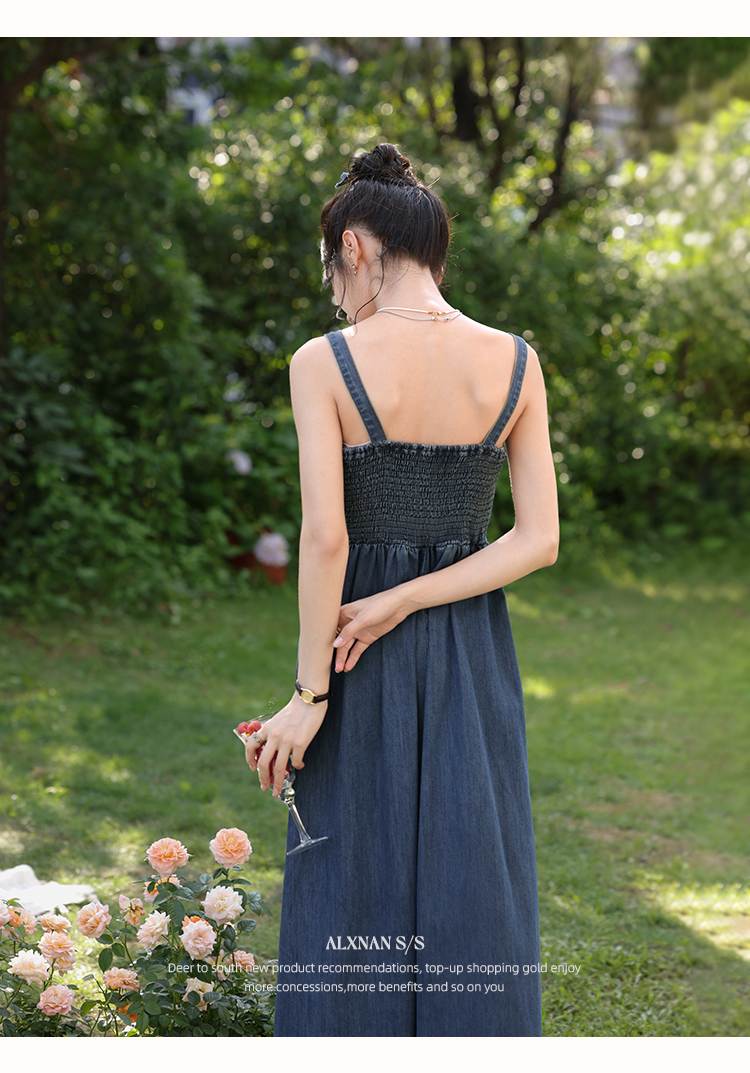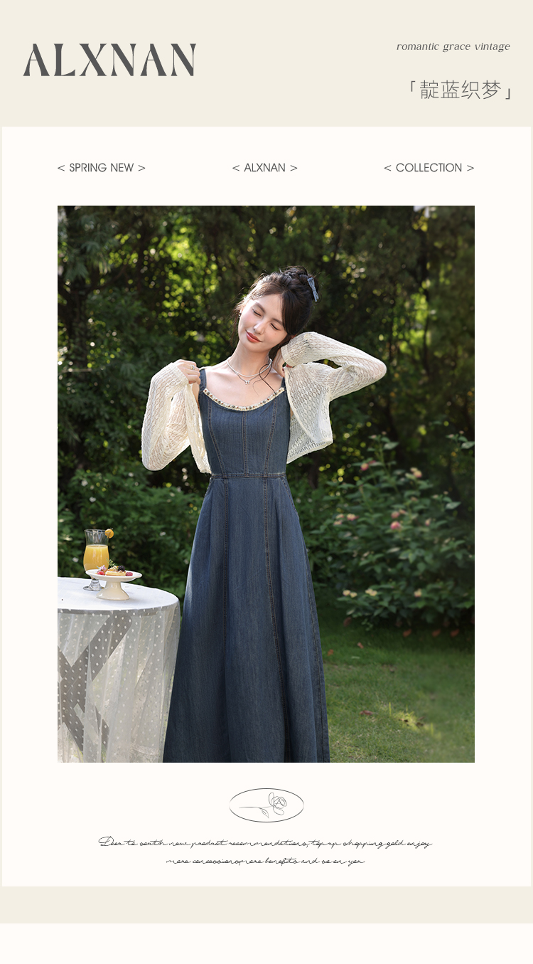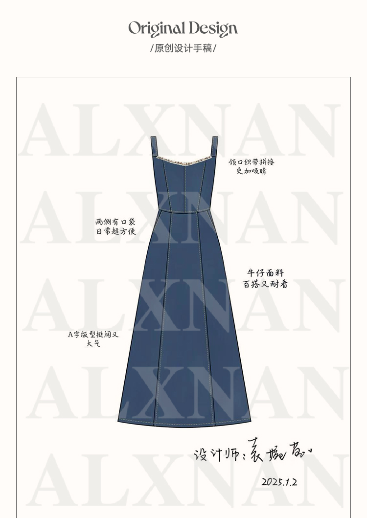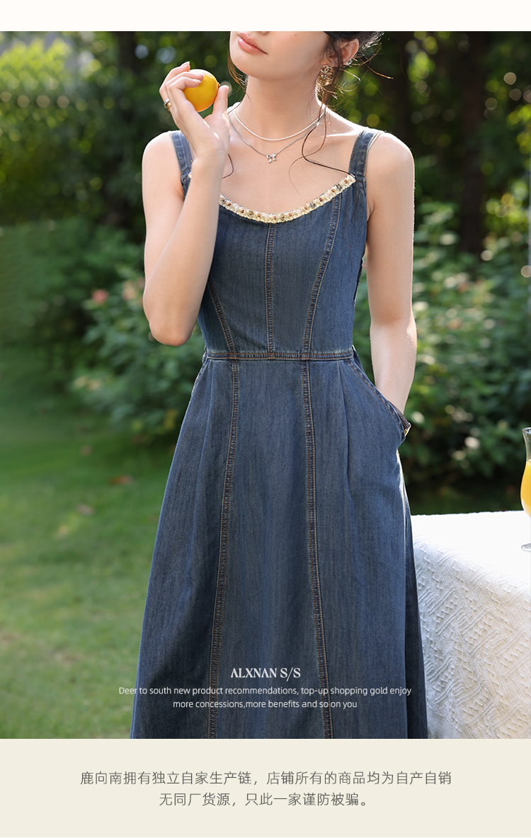 【65折秒杀】鹿向南「靛蓝织梦」法式气质蓝色牛仔吊带连衣裙L55859
