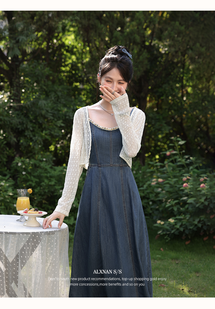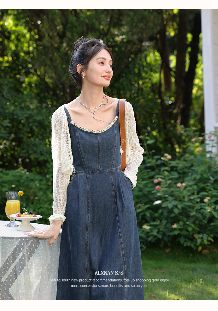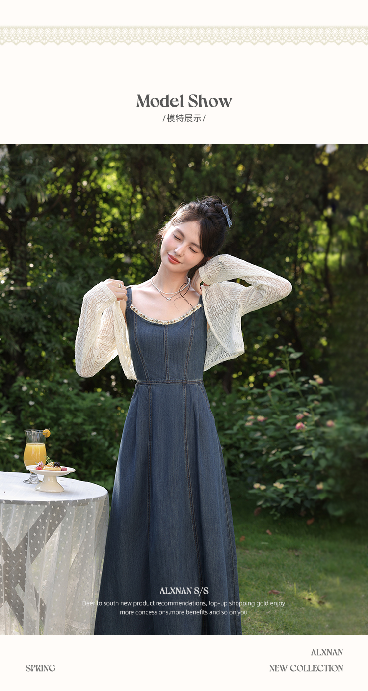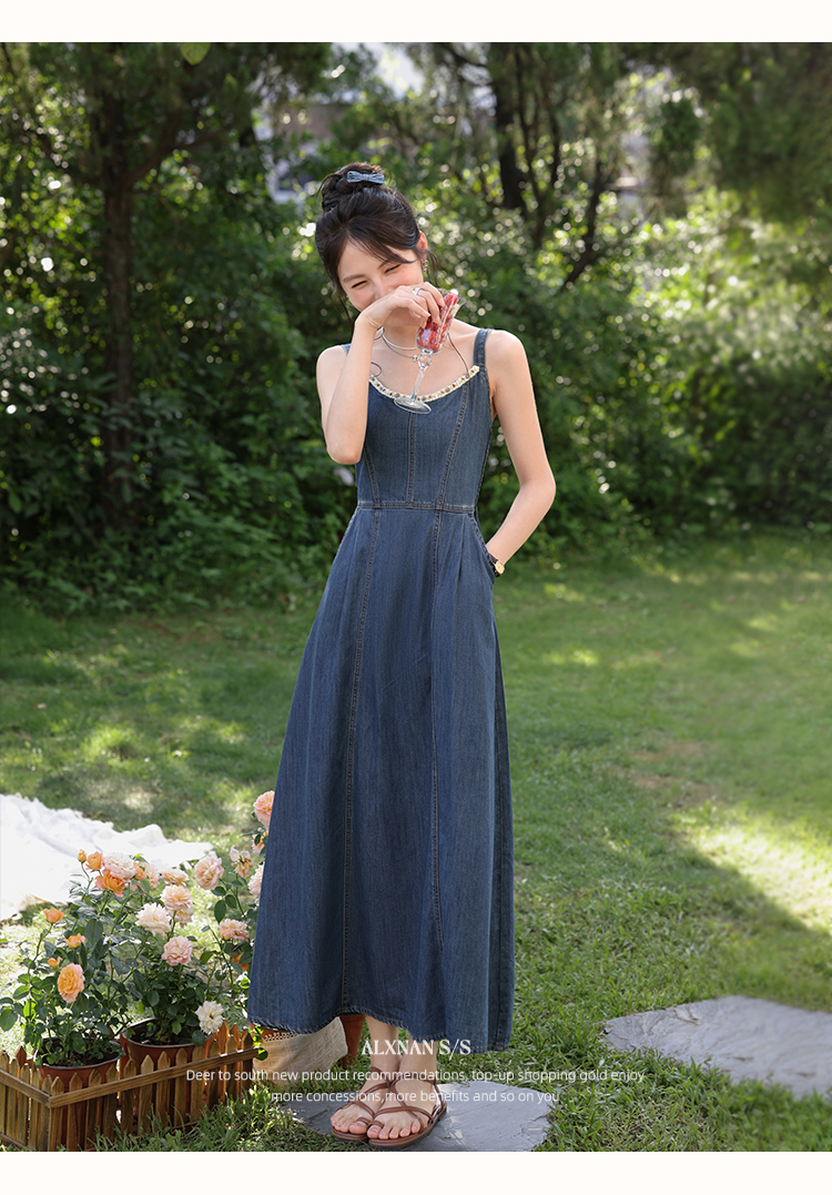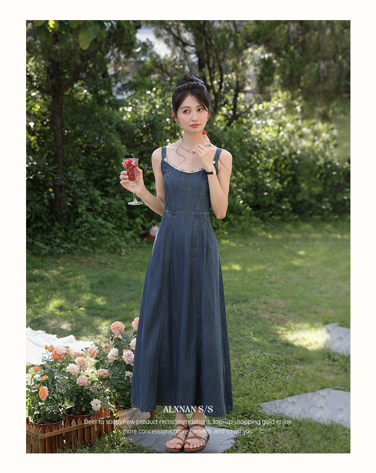 【65折秒杀】鹿向南「靛蓝织梦」法式气质蓝色牛仔吊带连衣裙L55859