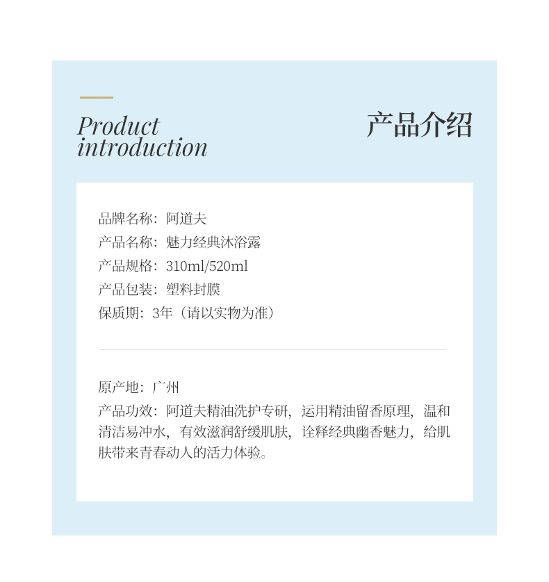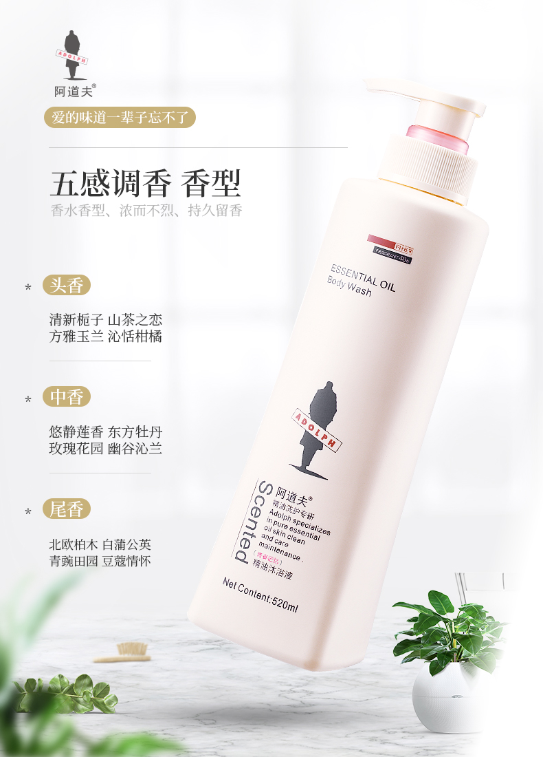 阿道夫精油洗护专研精油沐浴香露(青春记忆)520ml