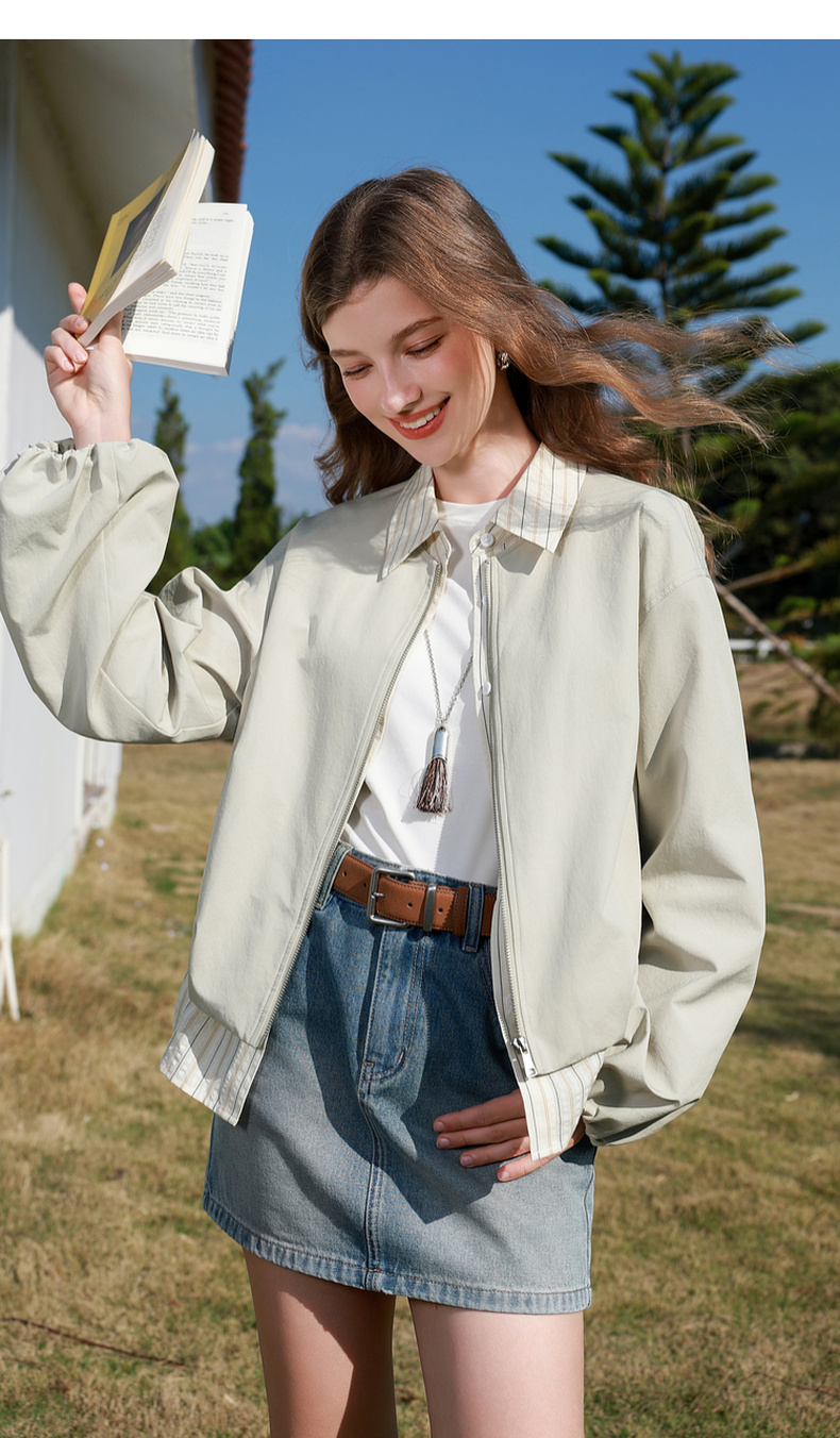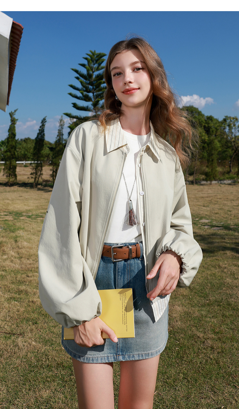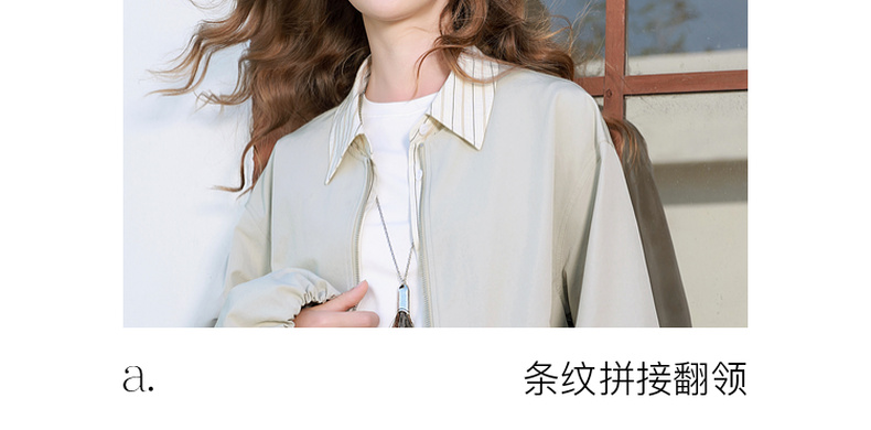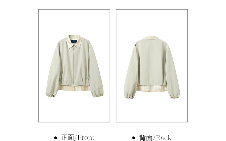 三彩2026春季新款假两件翻领夹克拉链开衫外套复古宽松休闲M