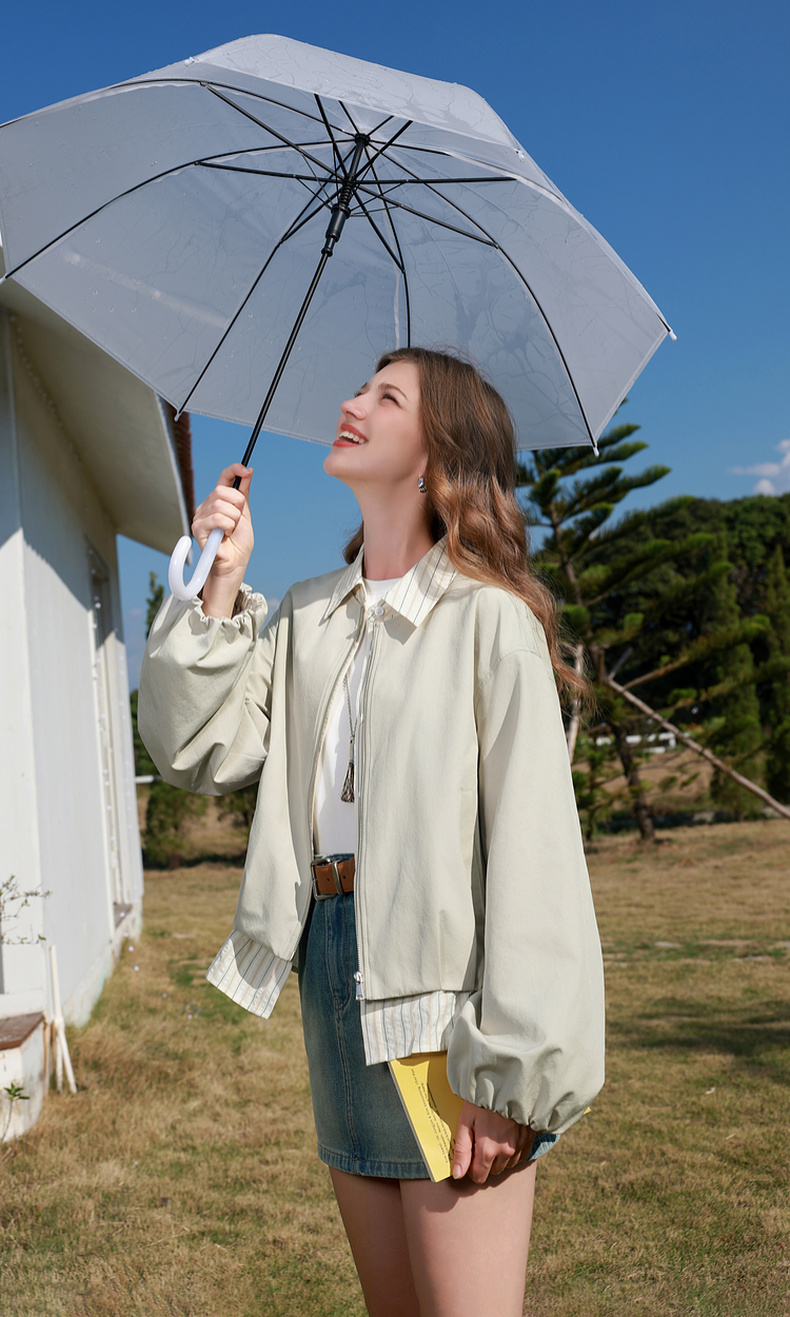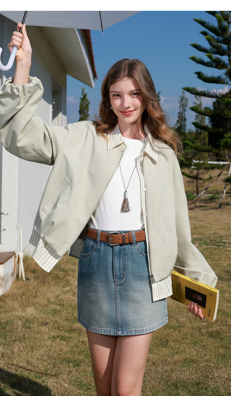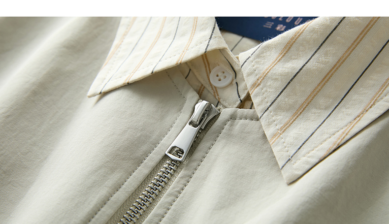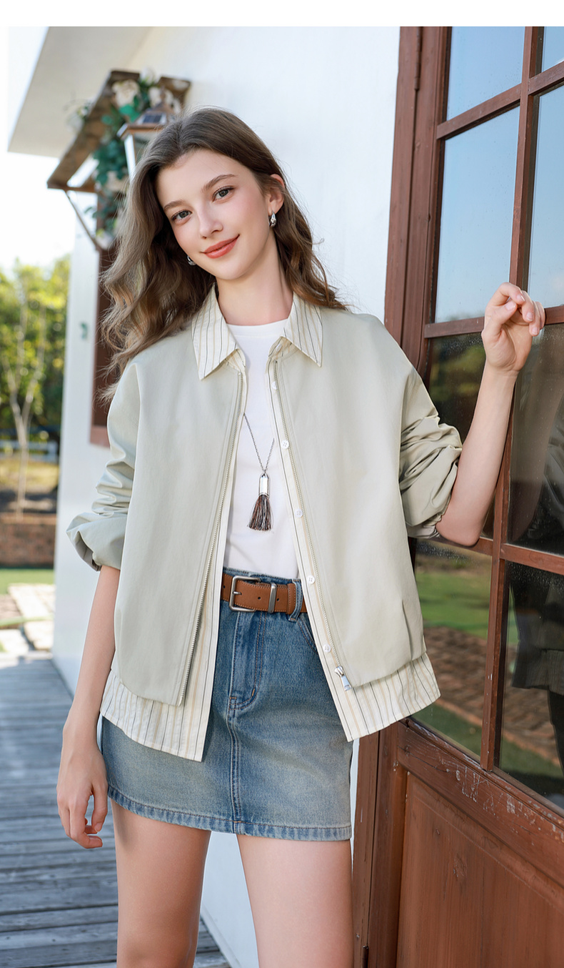 三彩2026春季新款假两件翻领夹克拉链开衫外套复古宽松休闲M
