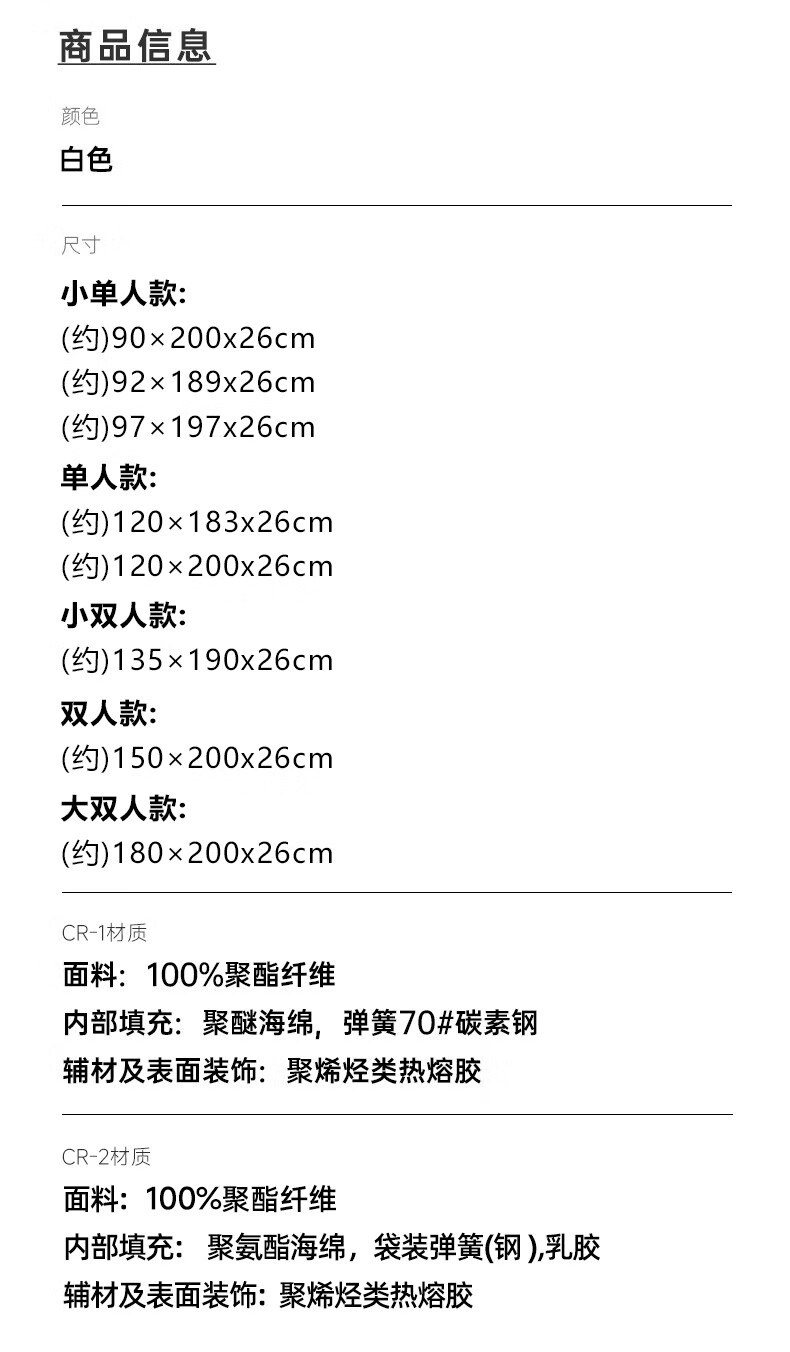 【家具】N-SLEEP CR系列床垫(1491元以下需自行安装)
