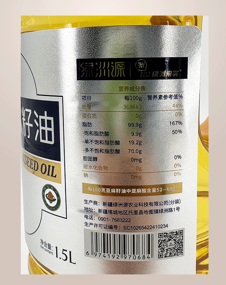 【绿洲果实】有机葵花籽油 1.5L