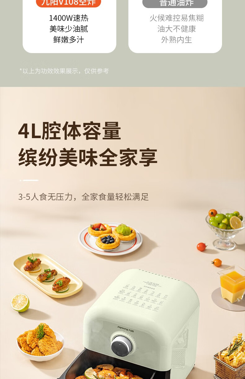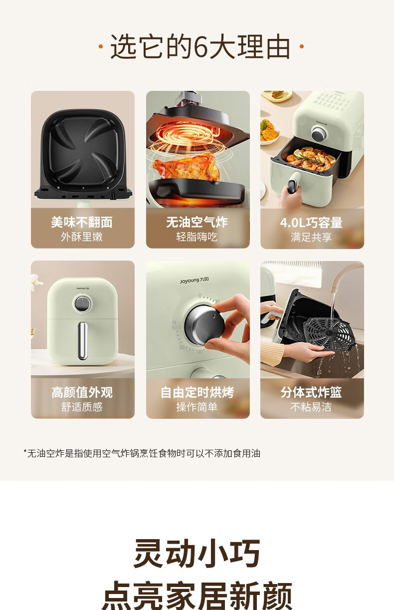 九阳空气炸锅KL40-V108豆沙绿