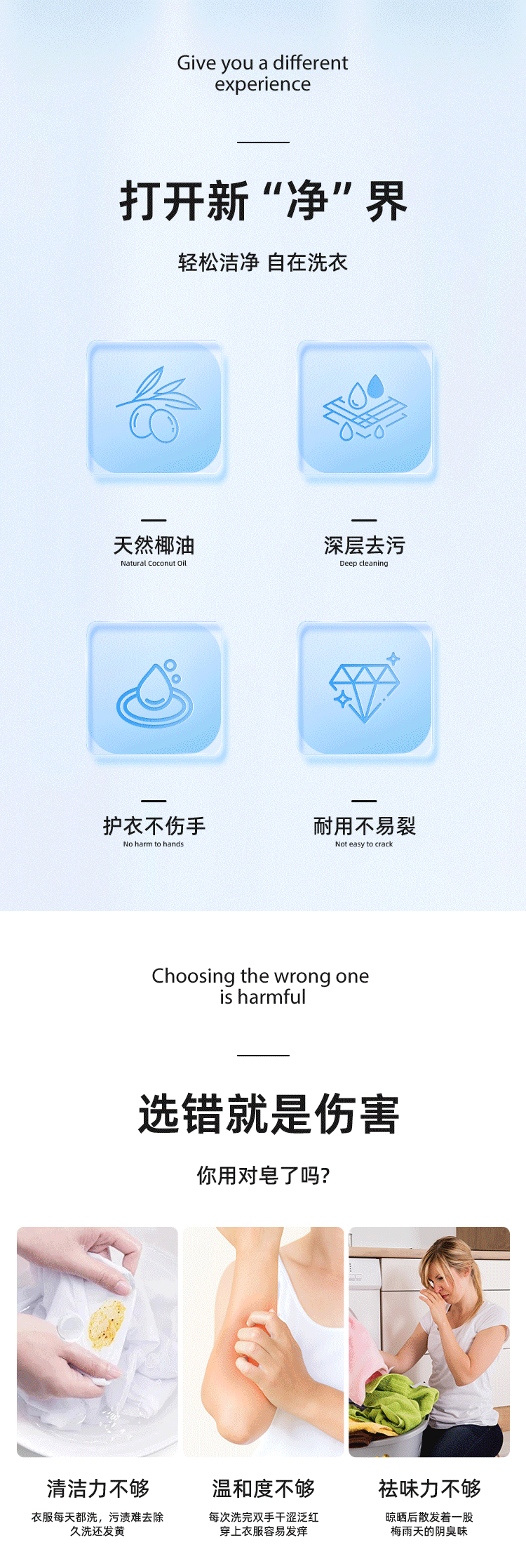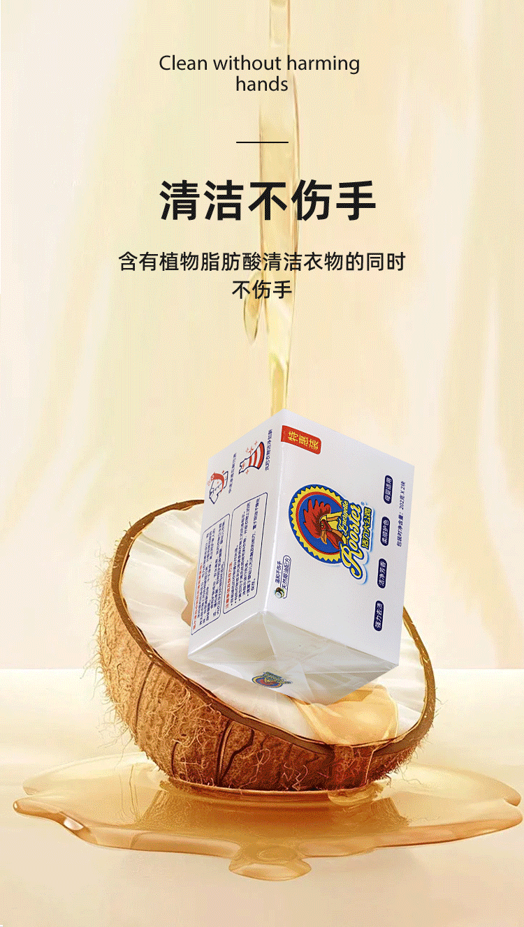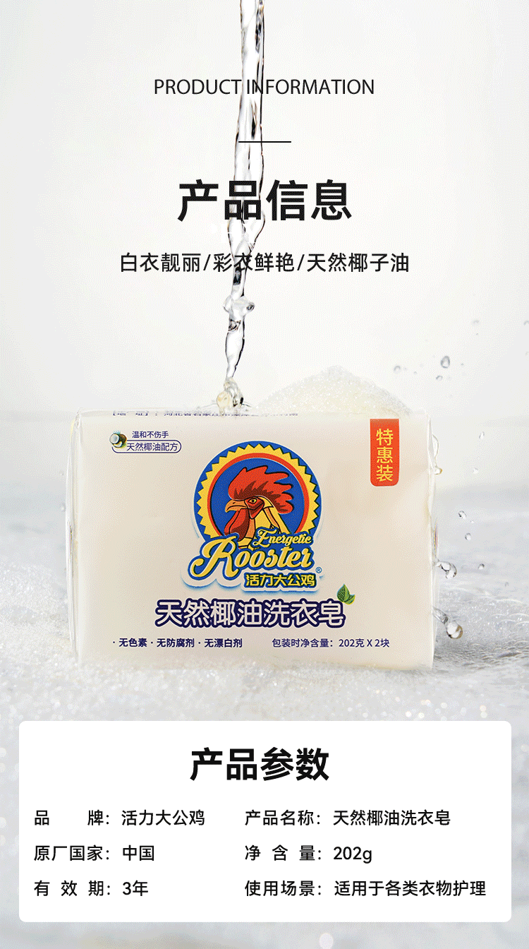 【活力】大公鸡天然椰油洗衣皂202g*2块*5组 不伤手去污香皂
