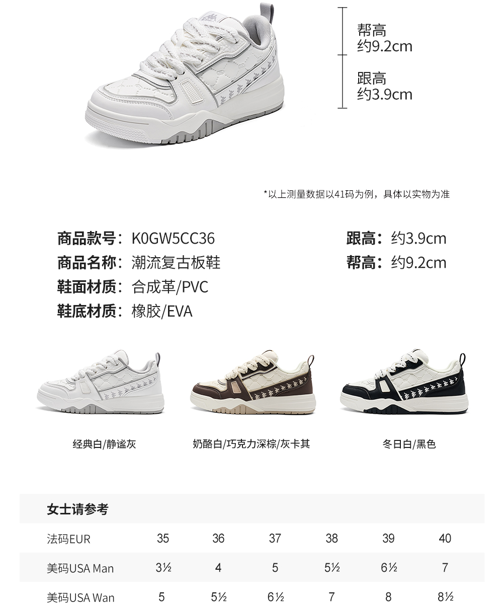 Kappa 运动板鞋2025新款休闲复古小白鞋低帮百搭男女鞋K0GW5CC36