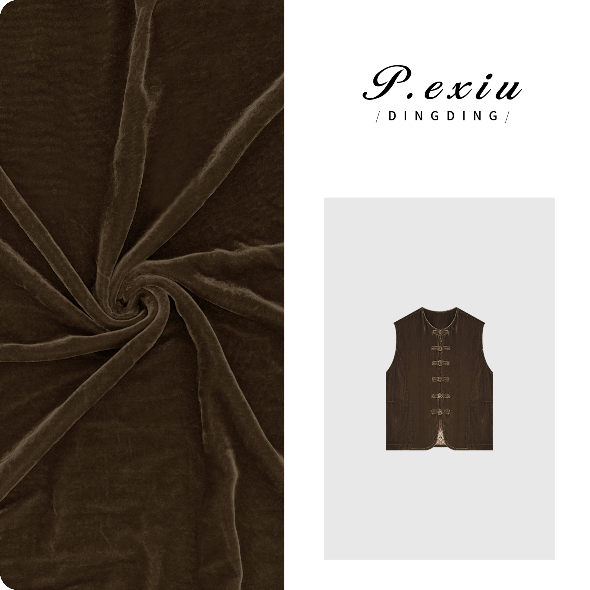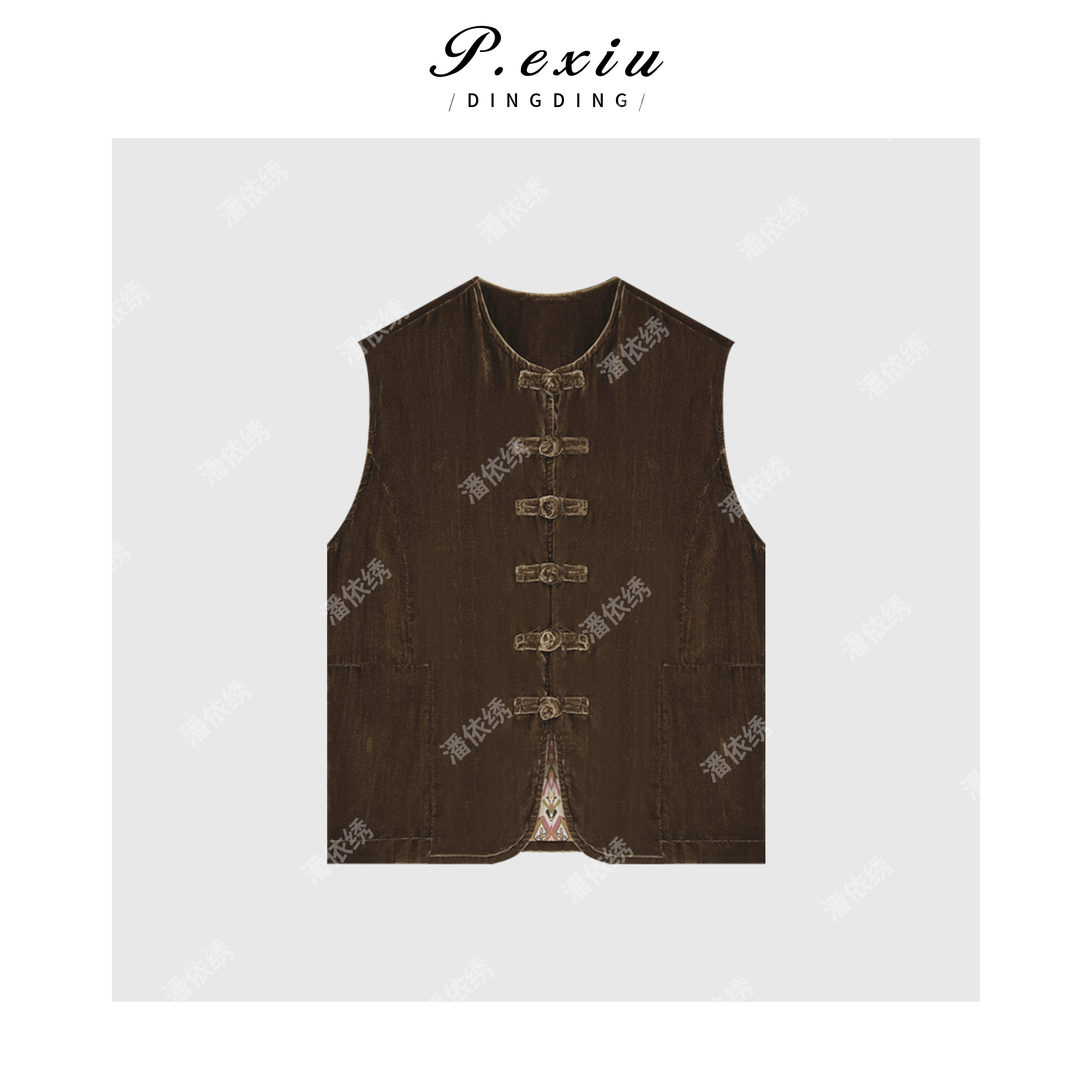 03-4潘依绣丁丁宠粉PanYiXiu/潘依绣人丝丝绒国风新中式盘扣坎肩无袖马甲 W-61802