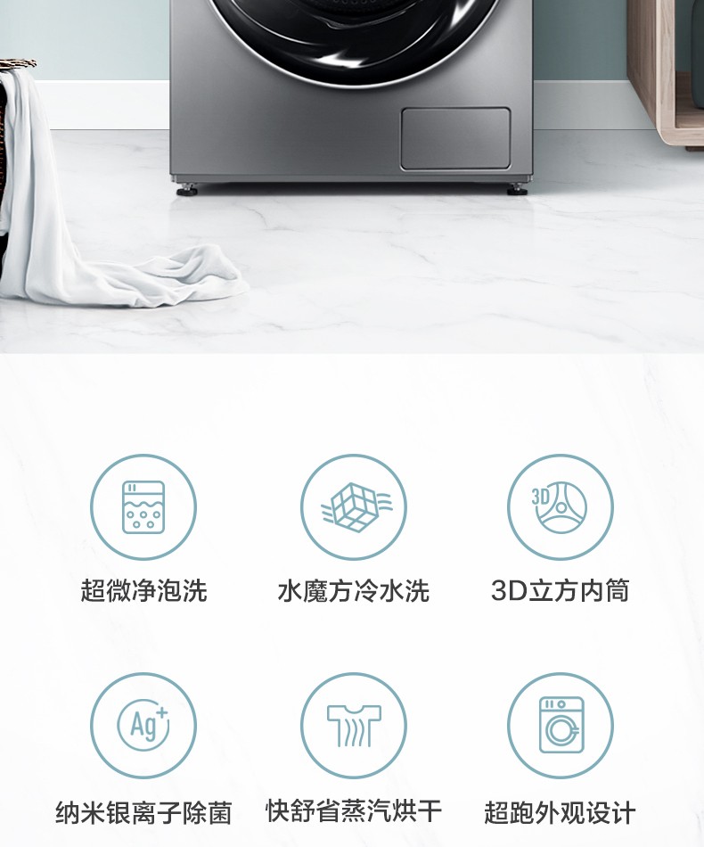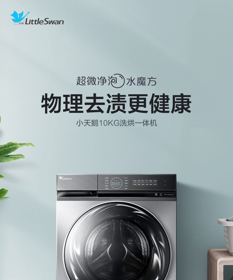 小天鹅(LittleSwan)洗衣滚筒全自动 超微净泡水魔方10公斤洗烘一体银离子除菌智能变频家电 【行业高端品】TD100VT808WMUADY