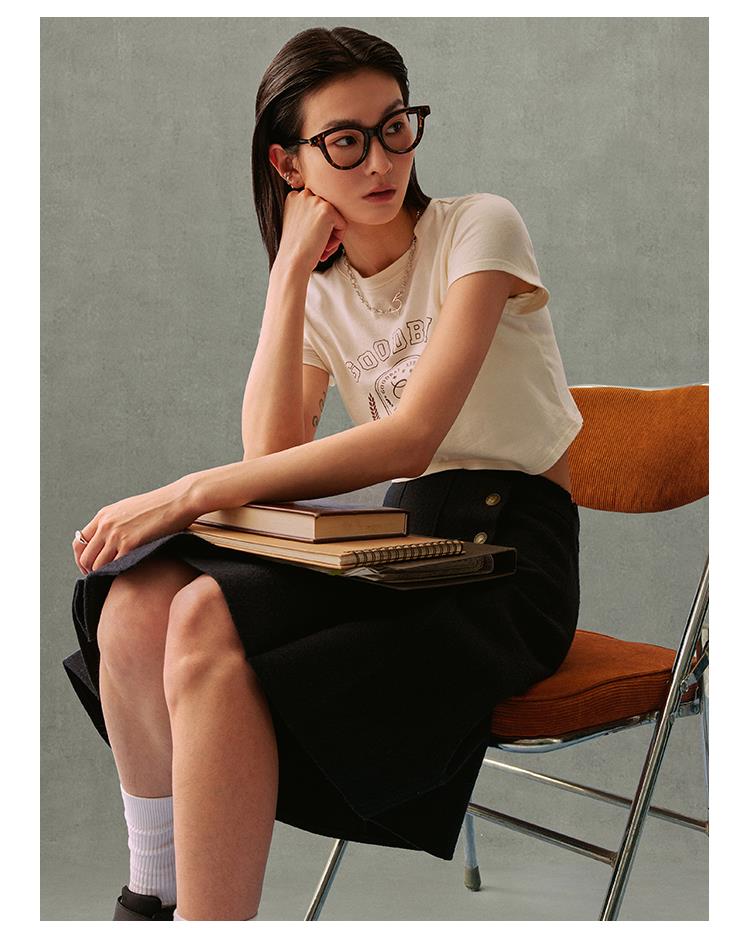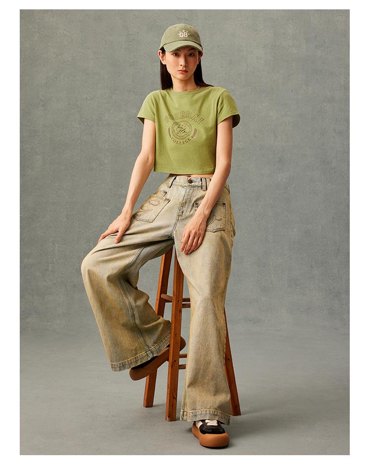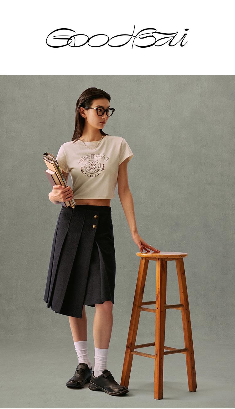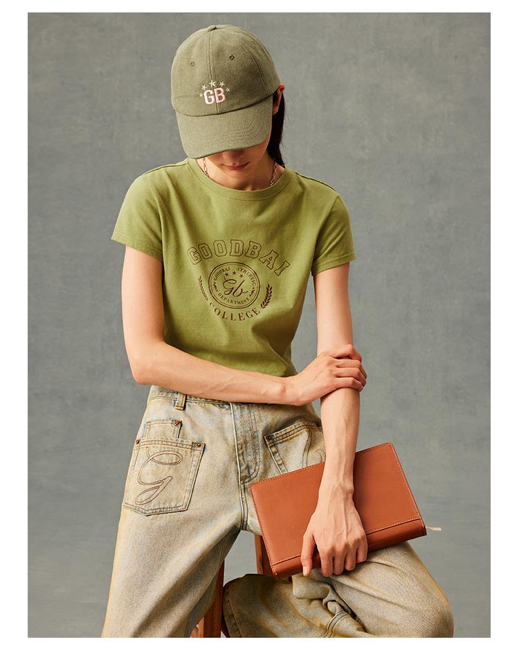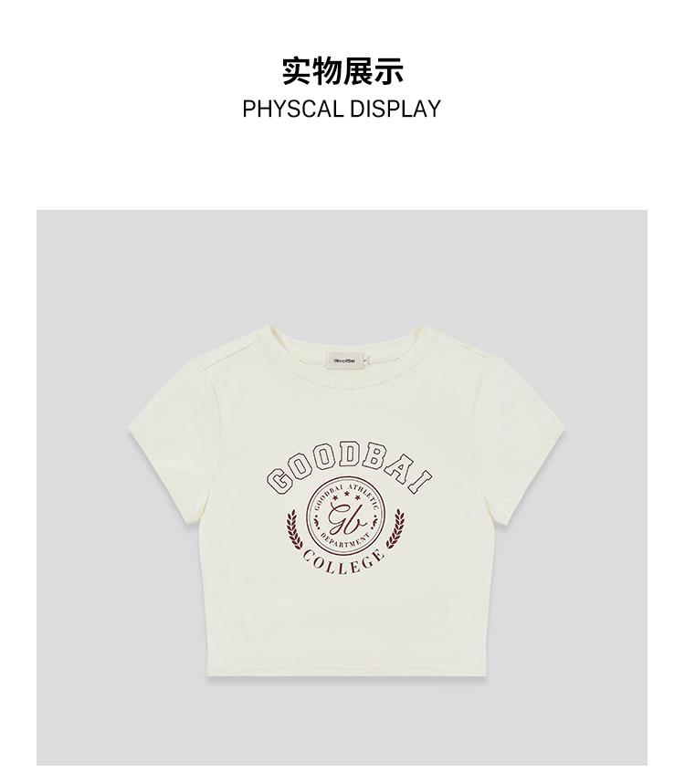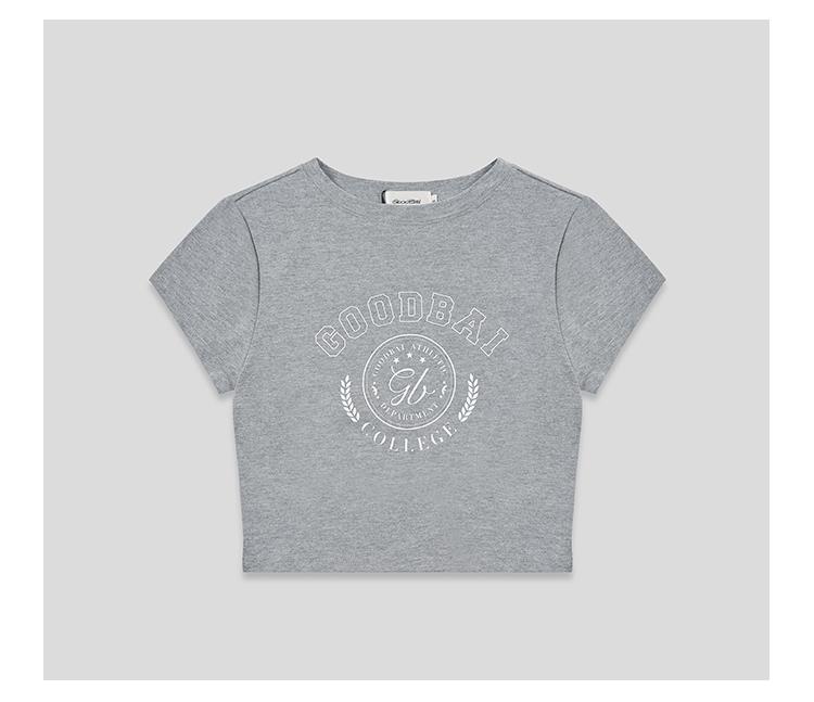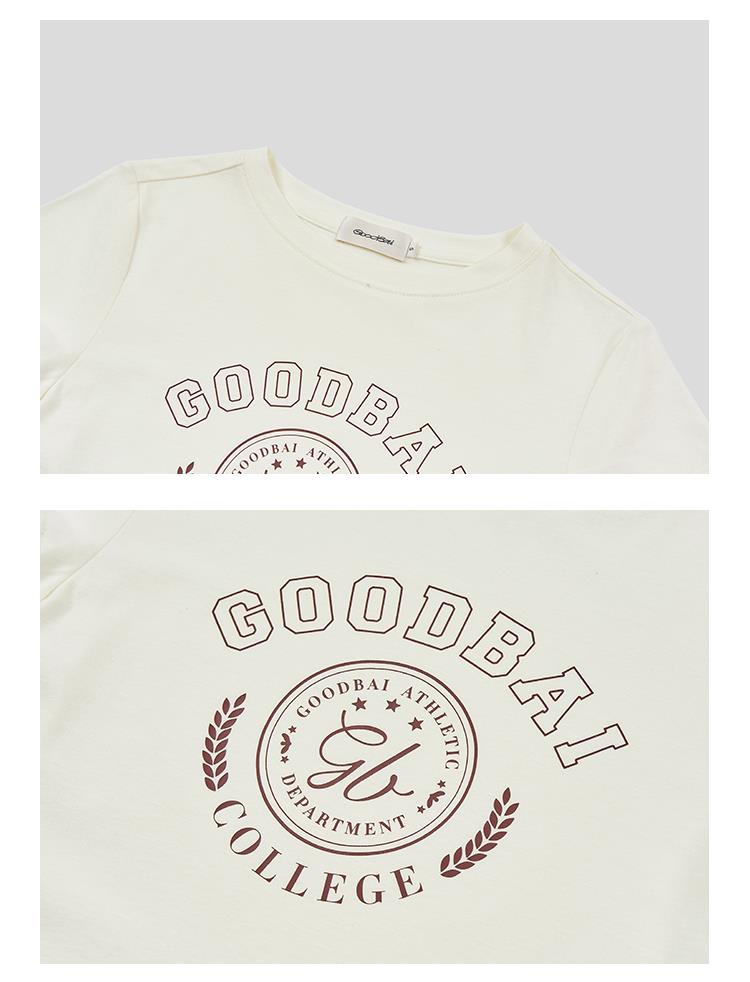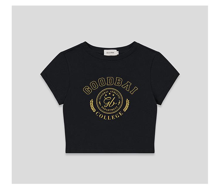 GOODBAI athletic学院logo印花正肩紧身短款T恤