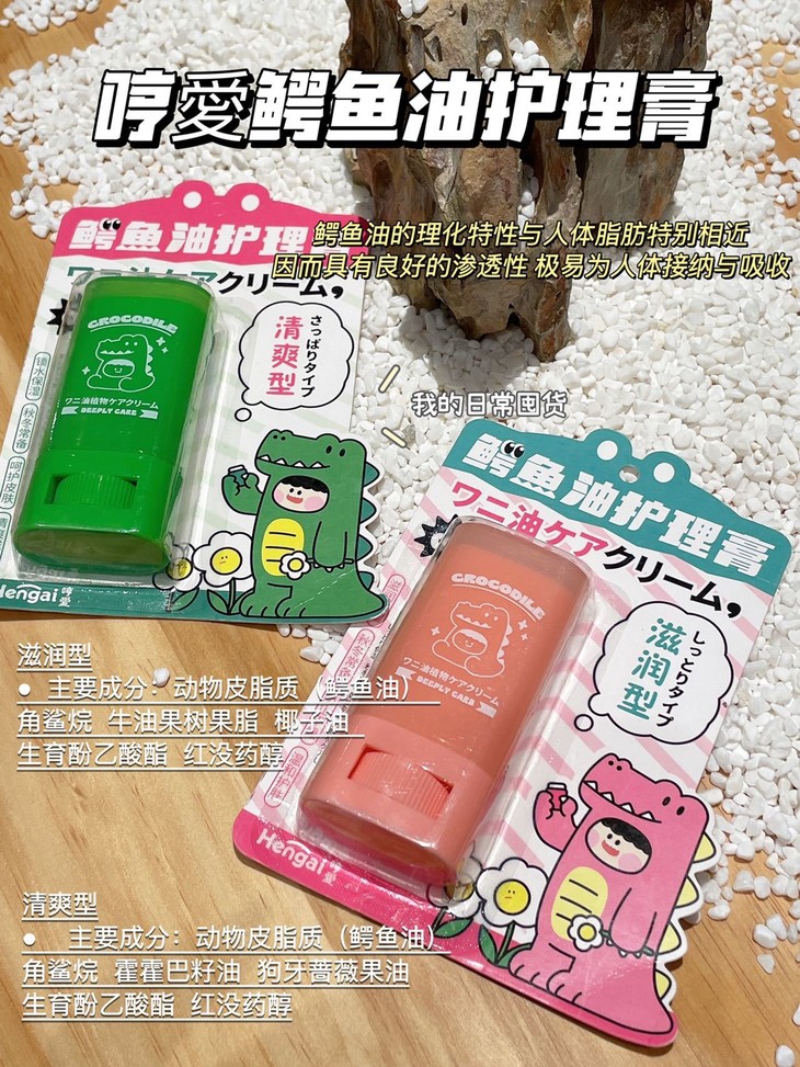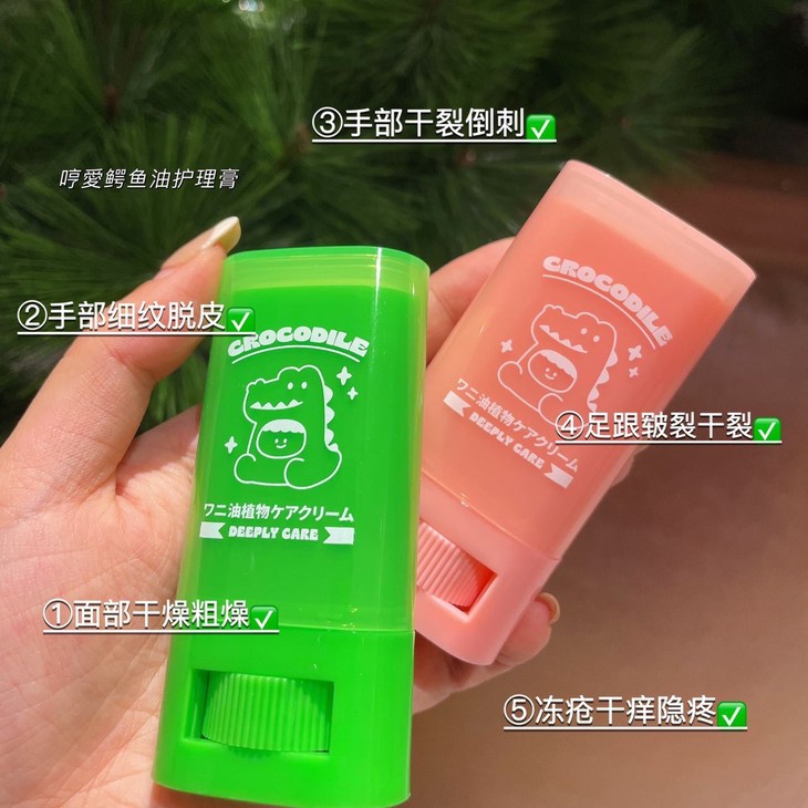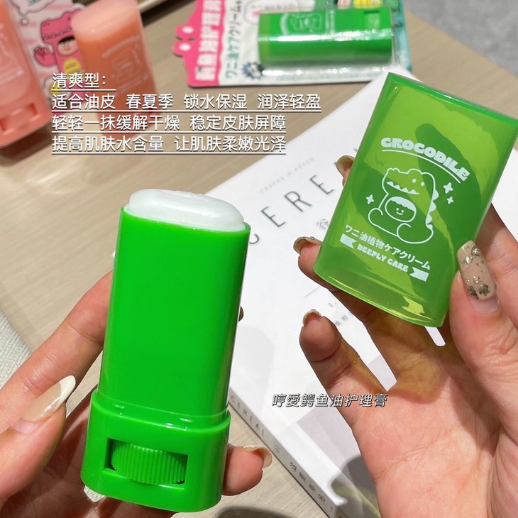 这款鳄鱼膏主要是植物精油成分,不含酒精、香精等刺激成分纯补水、纯滋润,外管像唇膏一样,直接旋转就可以了,除了可以涂抹手指上的倒刺,还可以涂抹手足关节干燥的部位,小小一支直接揣兜里,需要时随时涂抹