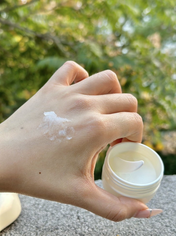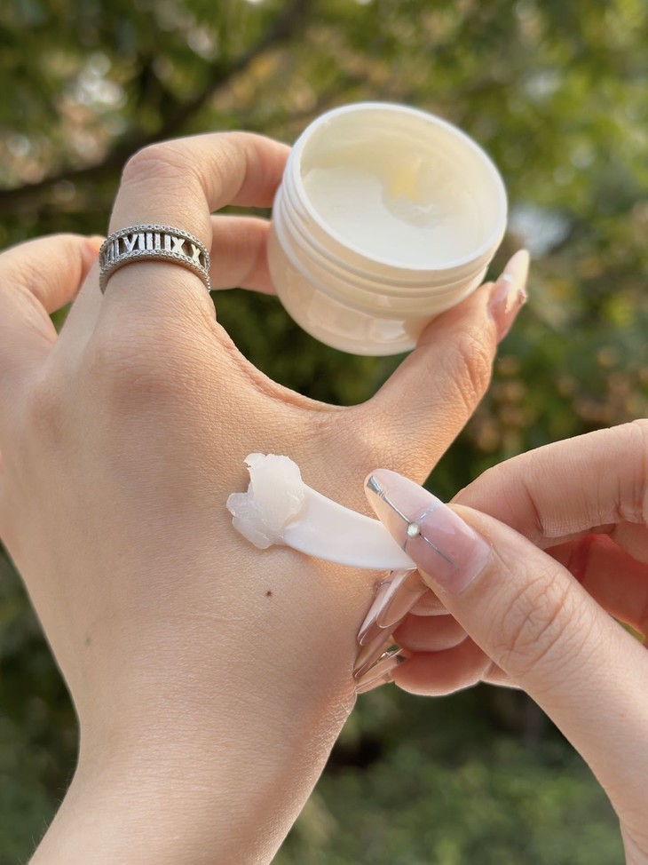 它的质地轻薄透气,细腻的白色膏体,抹在身上非常的滋润,补水润肤易吸收,按摩一会就能被皮肤瞬间吸收,涂抹之后不干皮,整个皮肤变得水水的润润的,保湿效果比一般的护理膏还要好用