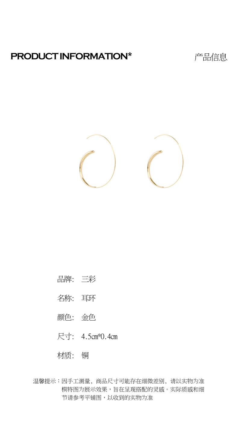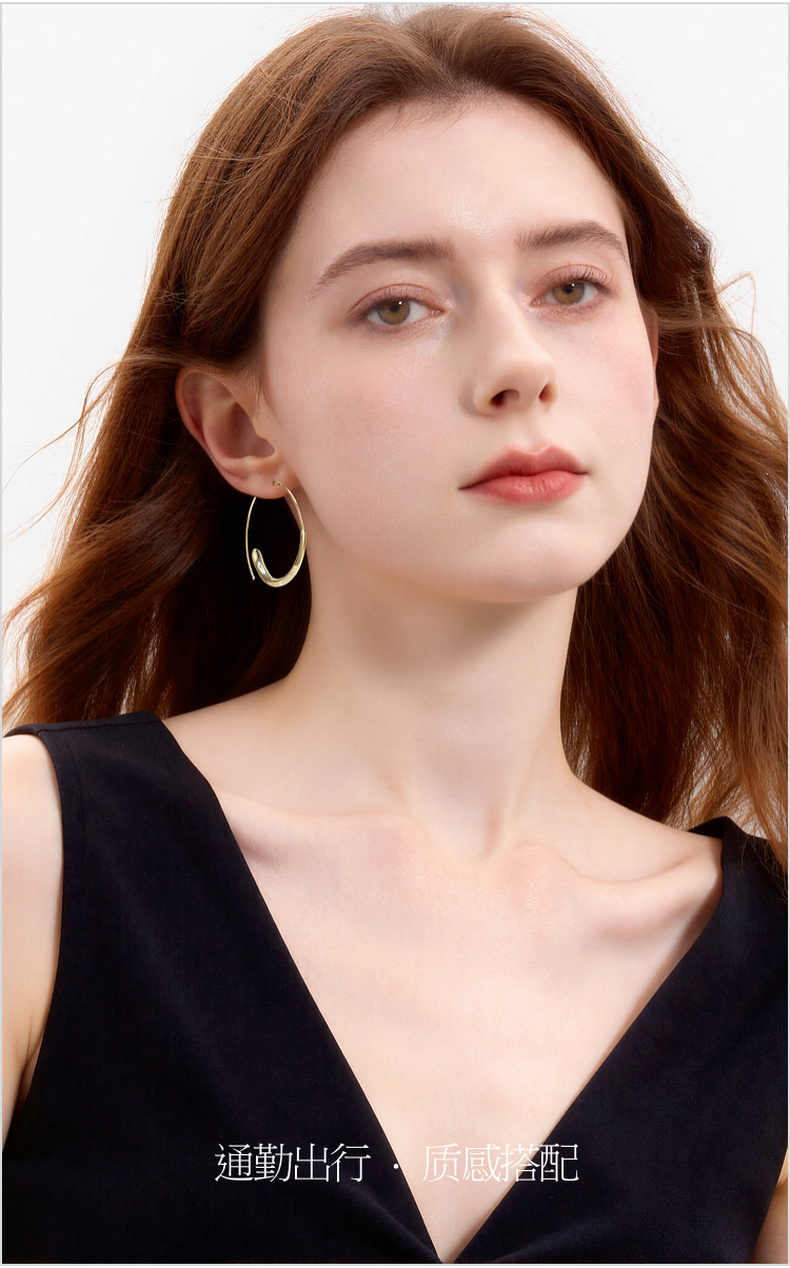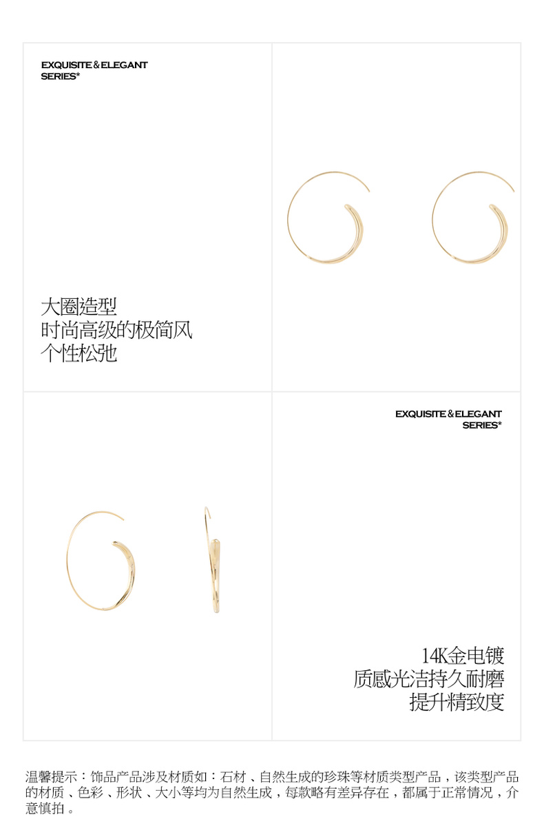 三彩2026新款极简风镀金大圈耳环时尚个性小众高级通勤轻熟女