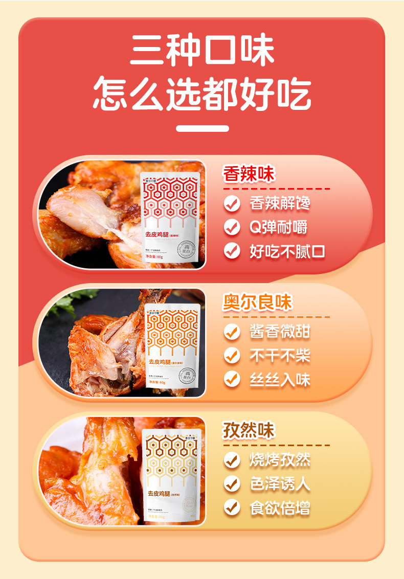 去皮大鸡腿鸡胸肉代餐开袋即食鸡腿肉奥尔良原味鸡腿肉