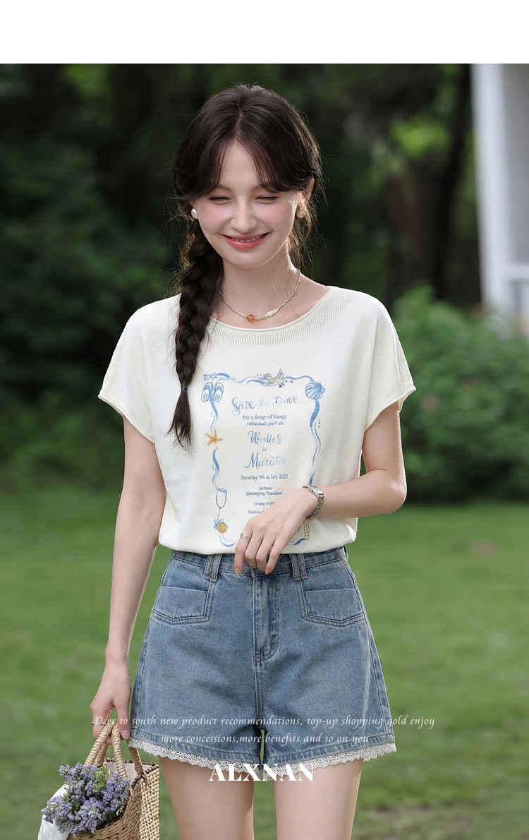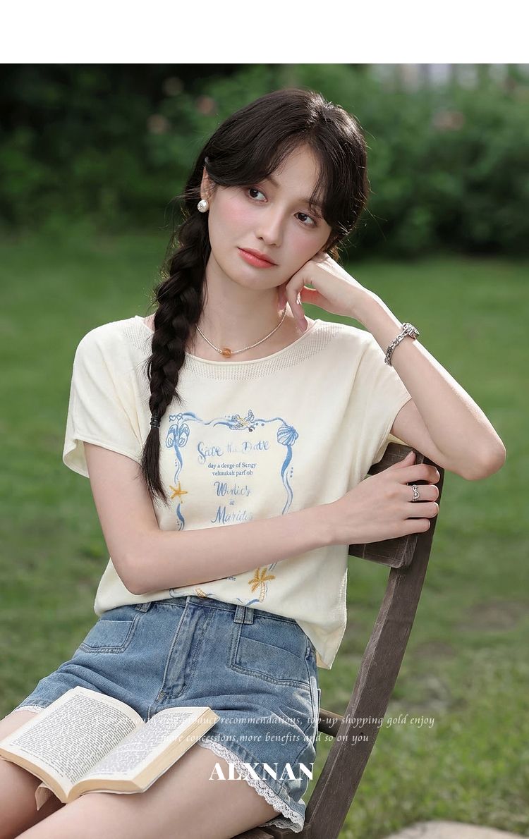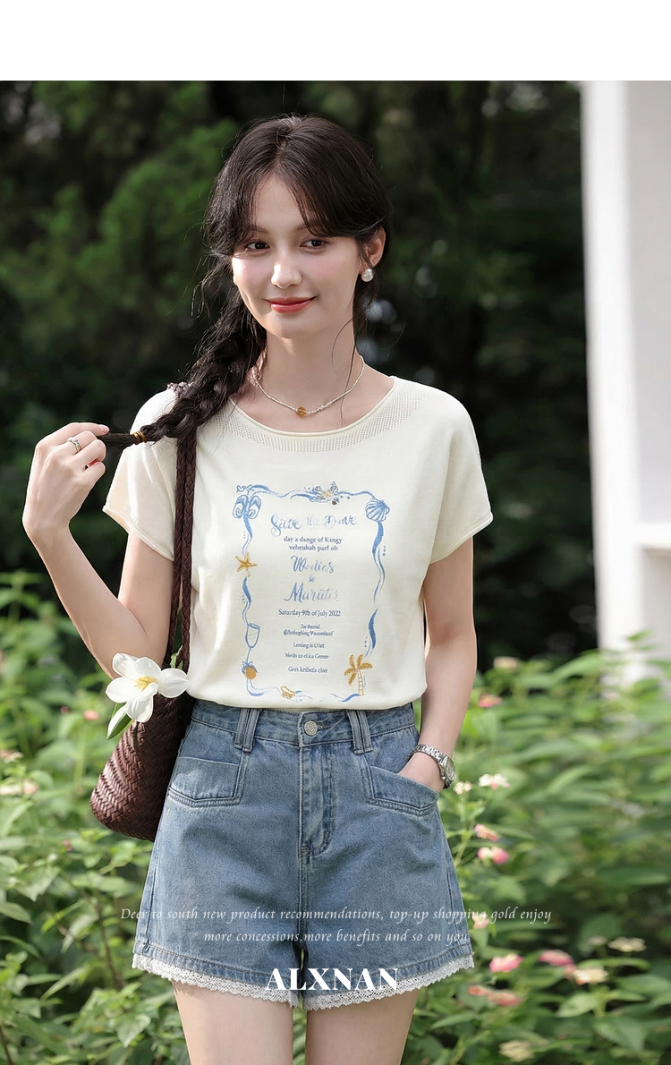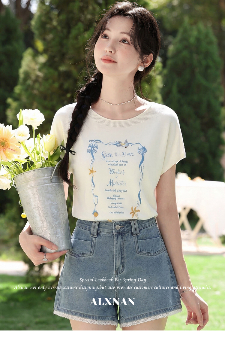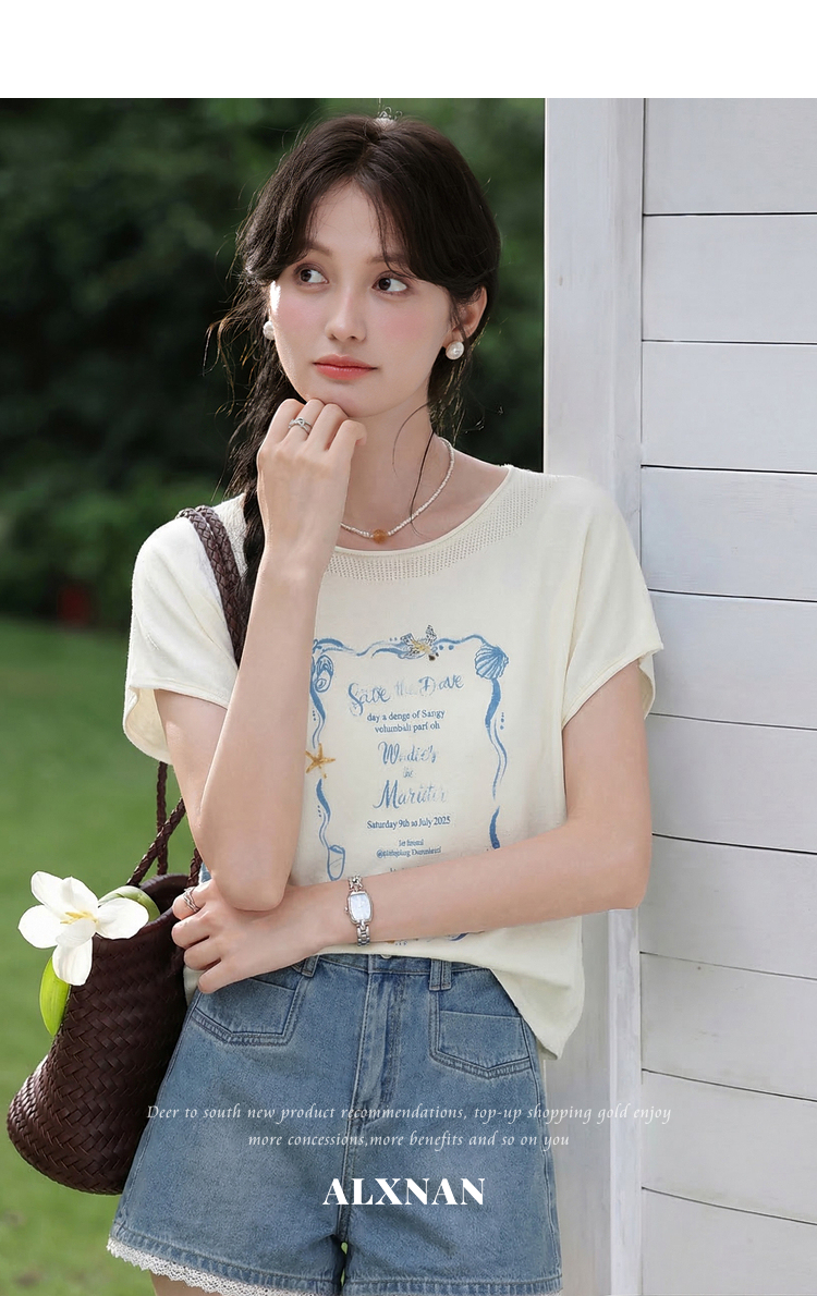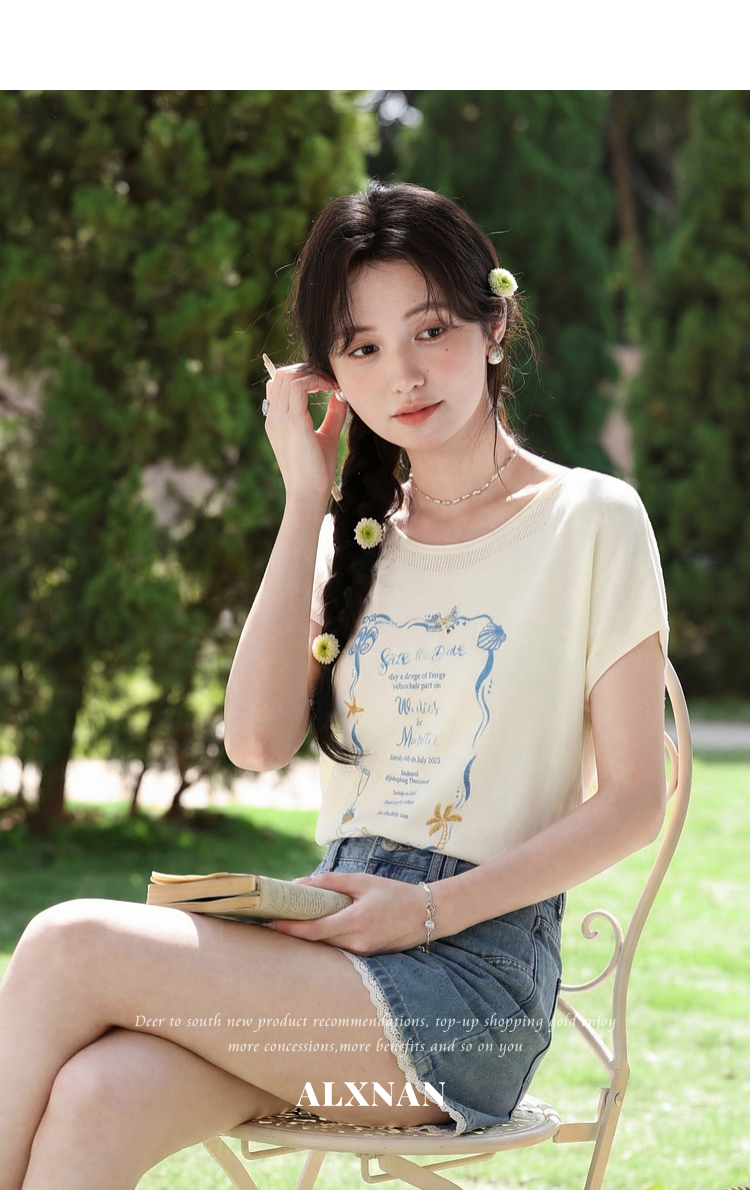 鹿向南【0328/00:00新品前一小时7折】蓝色字母T恤