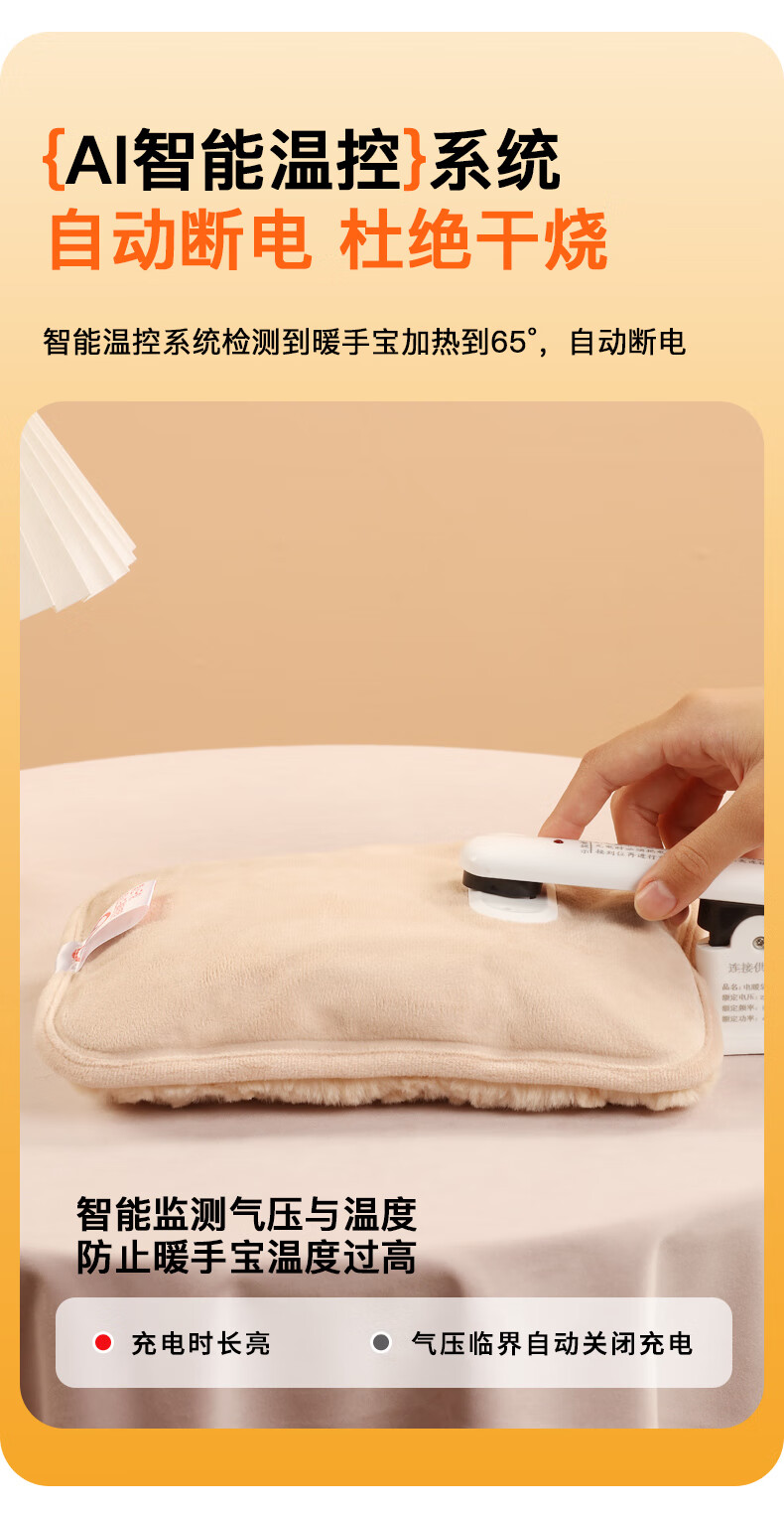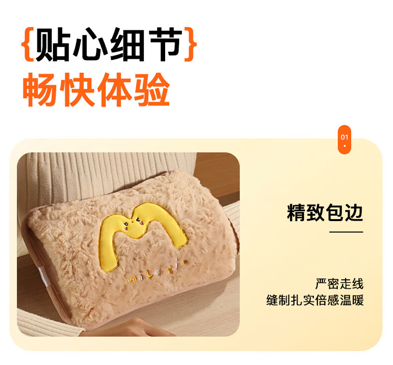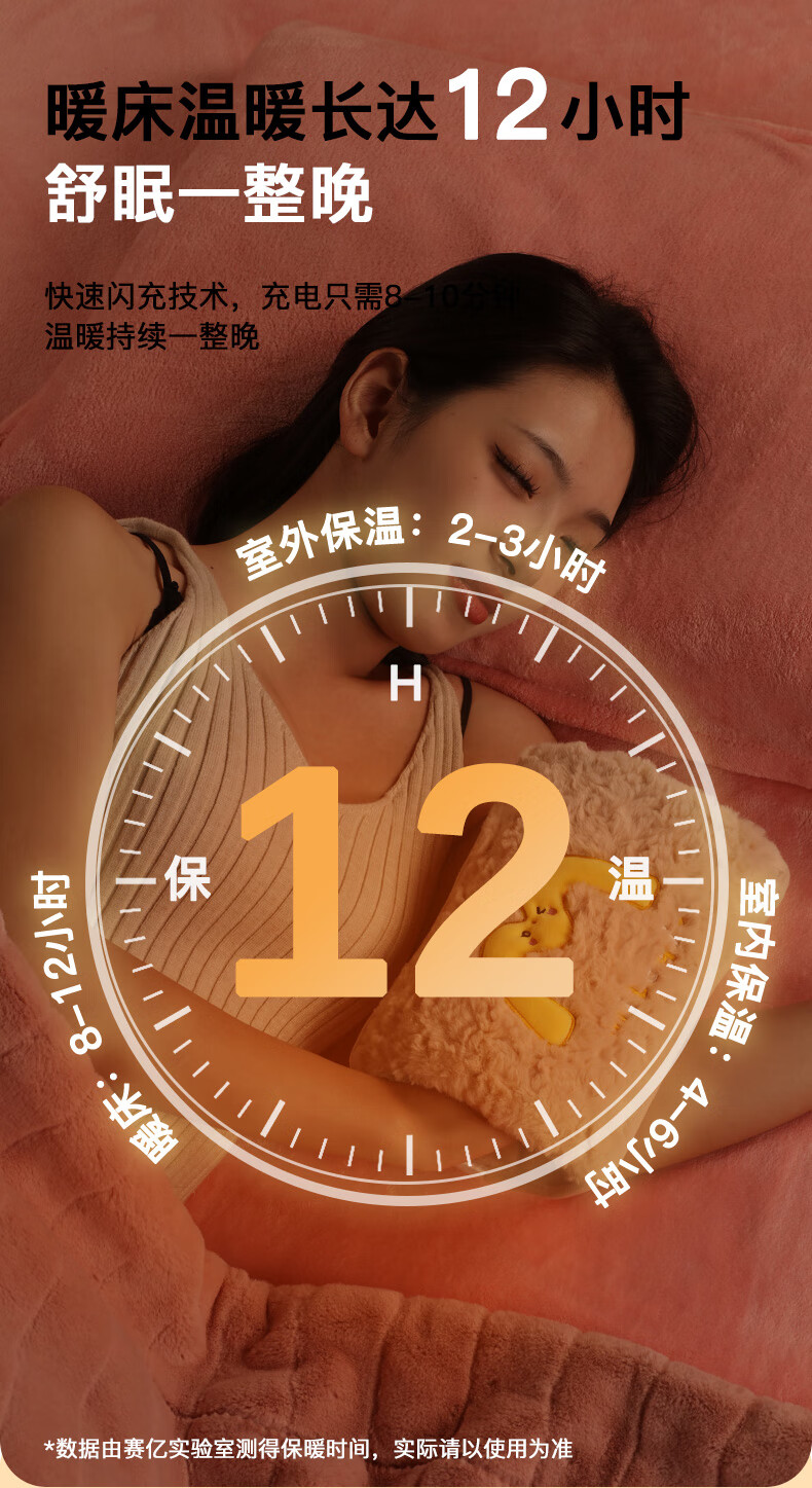 几素【全新升级】热水袋充电暖手宝石墨烯无水暖手袋云·暖手袋-棉绒款Warmer Life 1(HW09)