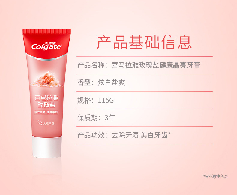 高露洁喜马拉雅玫瑰盐健康晶亮牙膏115克