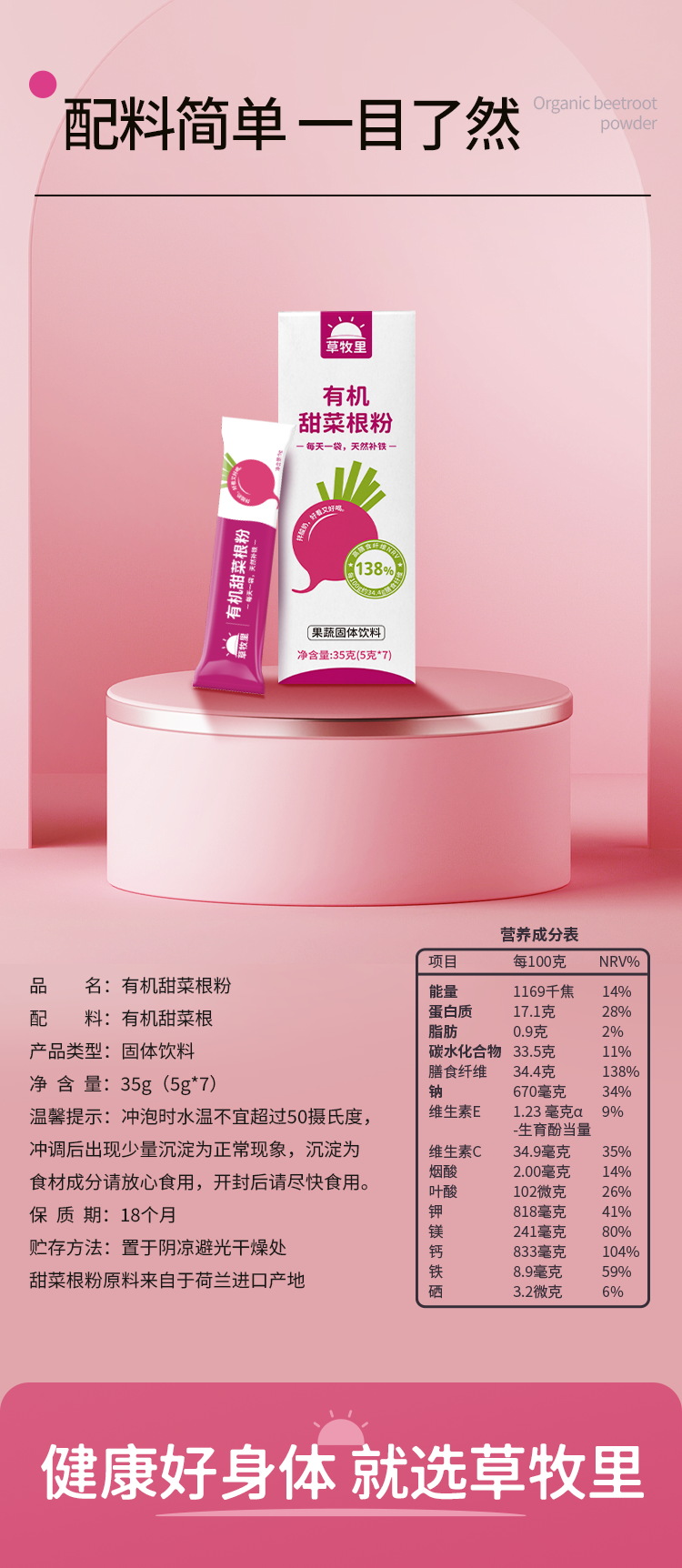 【0农残】草牧里 有机甜菜根粉试吃装 35g(5g*7条)/盒 0农残