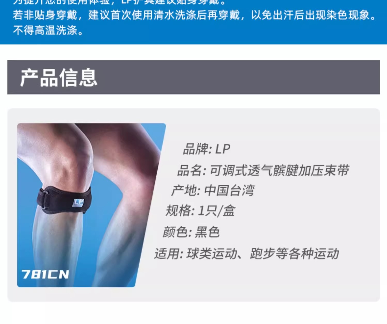 【LP】Coolprene 可调式透气髌骨加压带 单只装 781CN