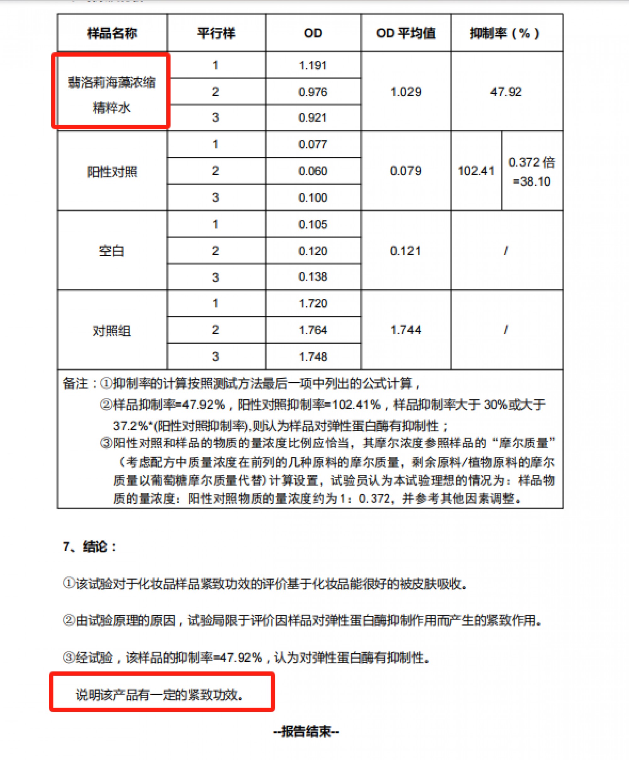 精粹水经过了重重检测~有专业的抗皱、紧致功效报告