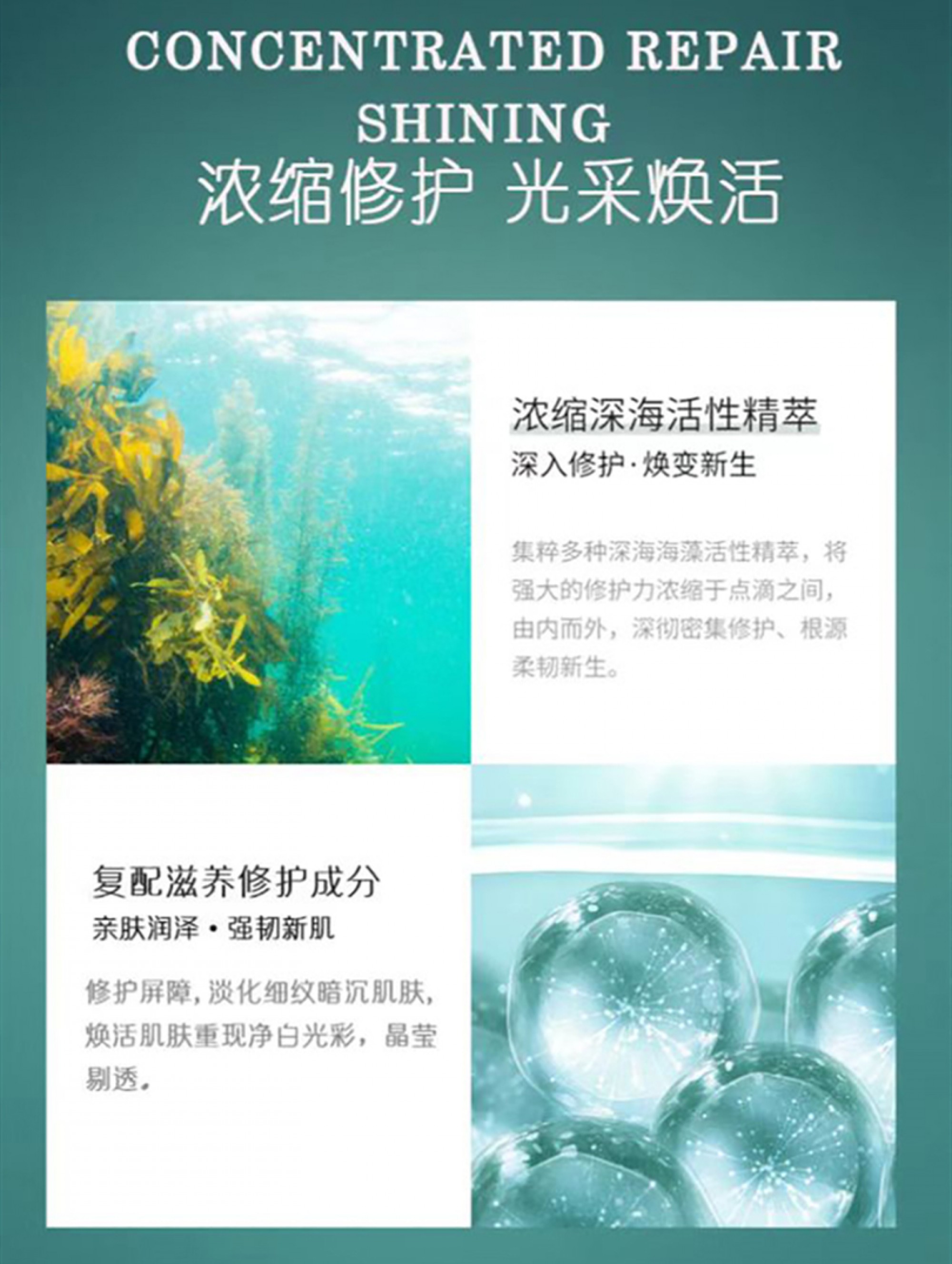拥有“灵魂”深海海洋精粹,这是从一种深海巨藻中提取的发酵物,可以从根源修护肌肤,促进细胞新生,提升自愈能力~