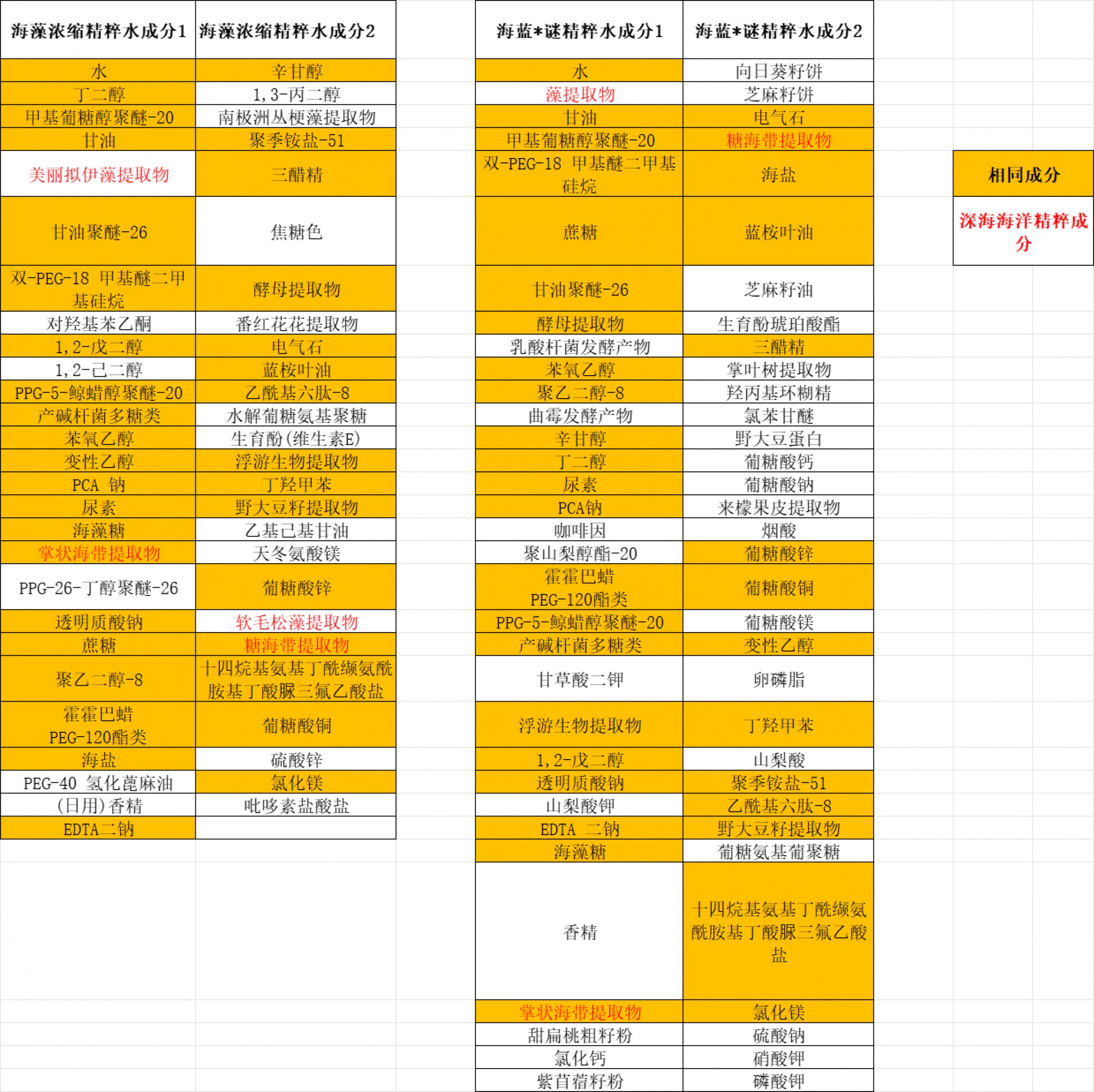 都是来自法国赛比克公司旗下的BiotechMarine,专门做海洋成分,和赫莲娜,雅诗兰黛等国际一线大牌同源,原料的含量及活性方面远超同行业,作用到皮肤的效果也远远领先于行业