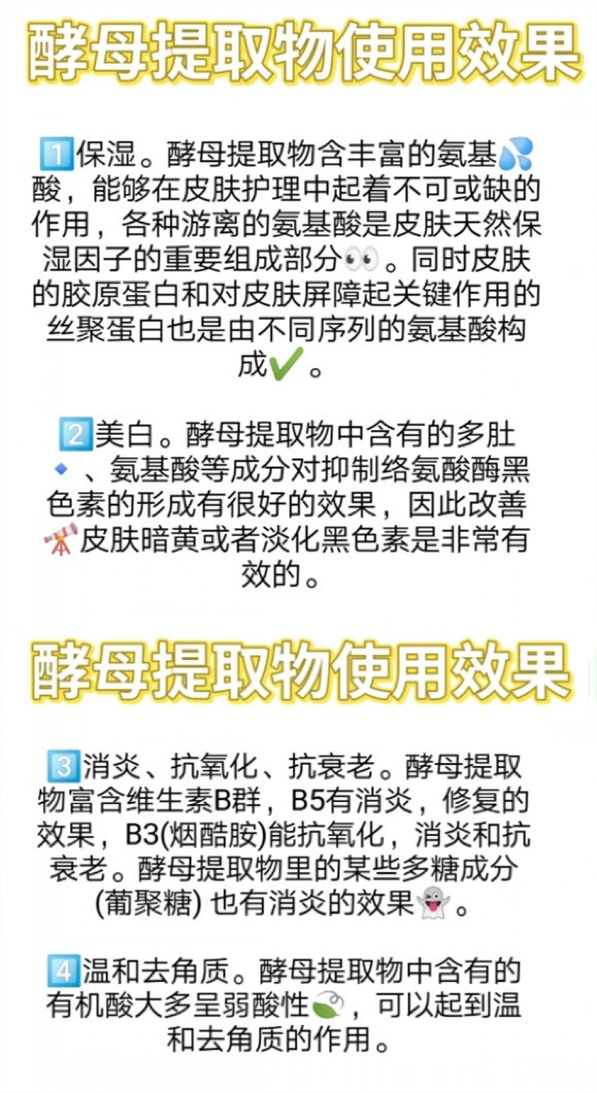 ✅再加上酵母提取物(来自于亚洲排名第一的安琪酵母)和浮游生物提取物(来自知名原料供应商法国仙婷)