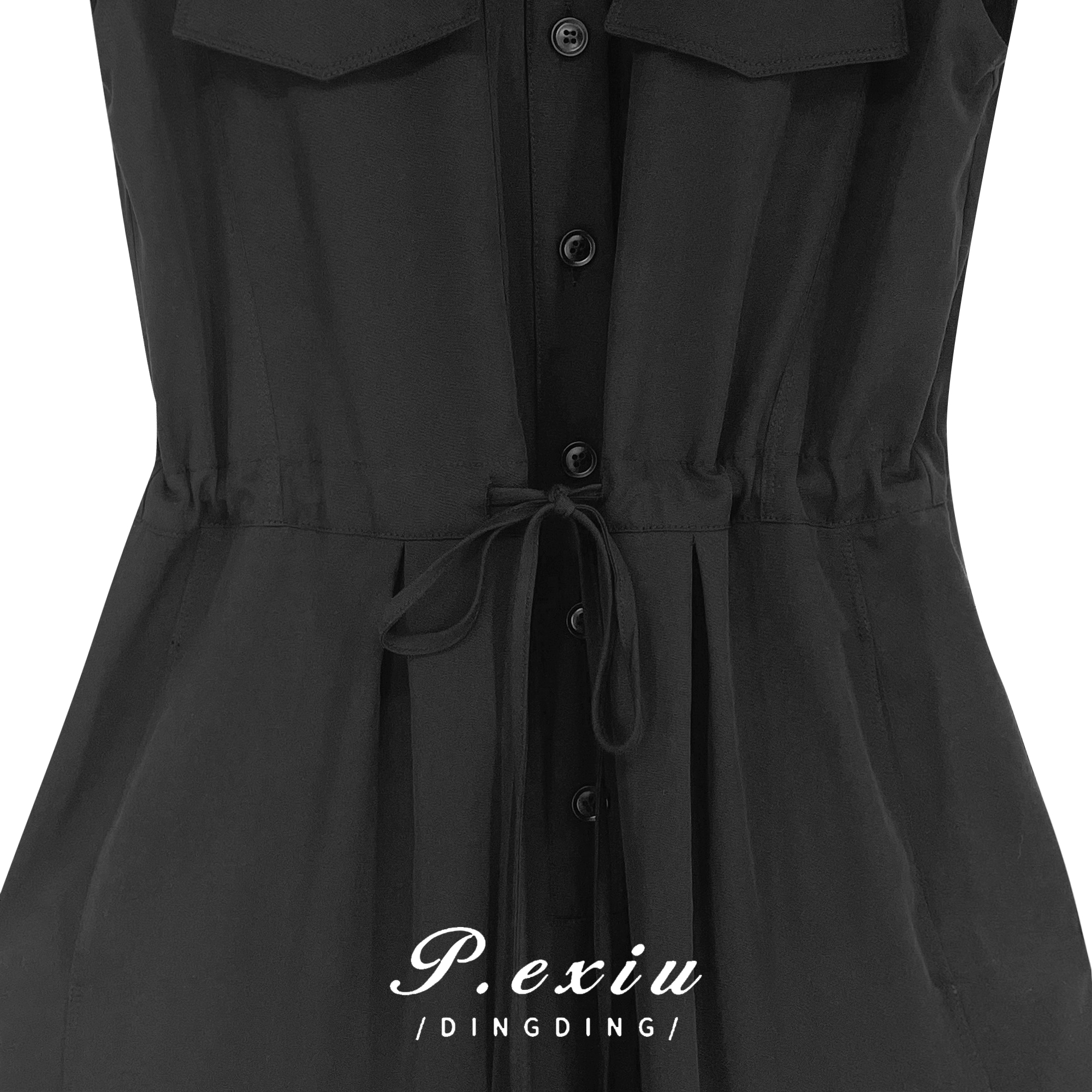 04-1潘依绣丁丁宠粉亚麻复古拼接网纱下摆无袖连衣裙 Q15178