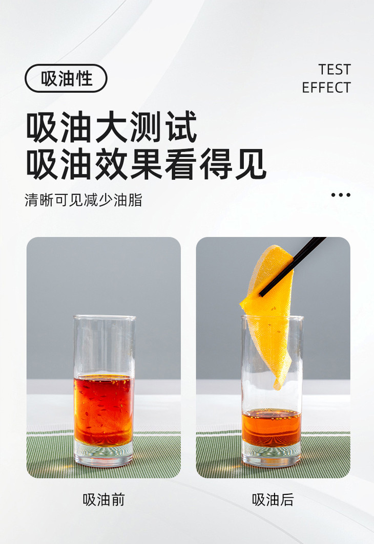 🌟 亮点1:高效吸油,汤面清澈见底 现在有了这款吸油纸,只需要轻轻一放, 短短几秒钟就能看到油脂被迅速吸走, 浮油都乖乖被锁住了