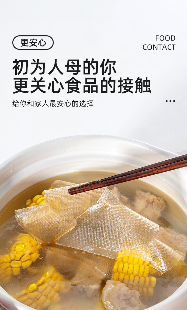 煲汤时汤温很高 如果吸油纸的材质不好 可能会释放有害物质,影响健康 这款吸油纸采用食品级材质, 无任何化学添加剂, 通过了严格的食品安全检测, 耐高温,无甲醛、无异味