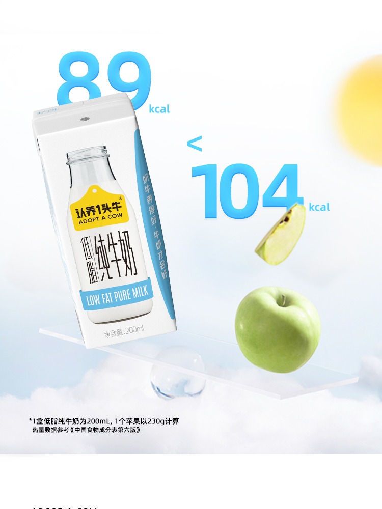 【认养一头牛】健康低脂纯牛奶200ml*10盒*3箱