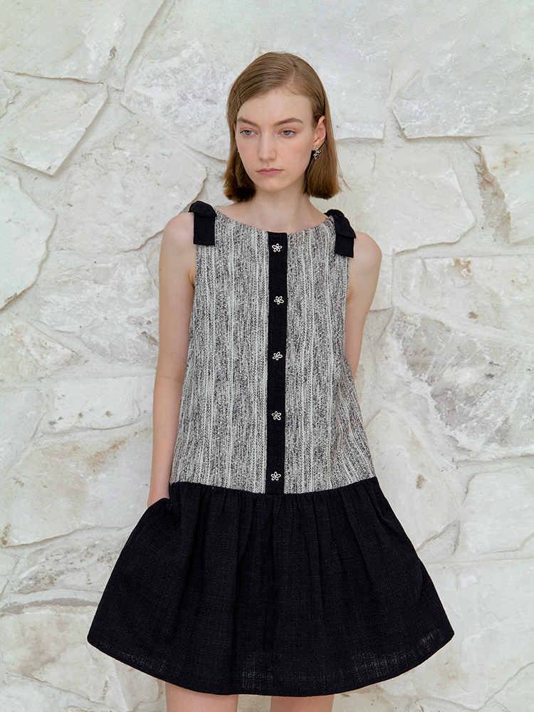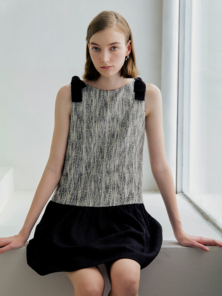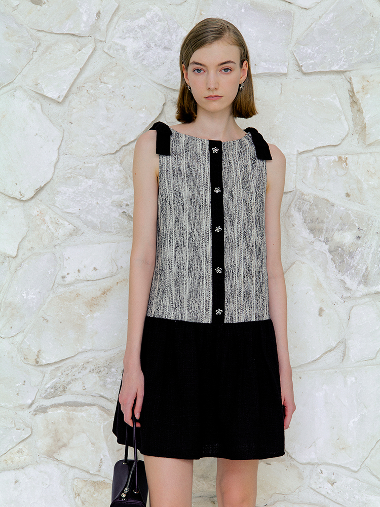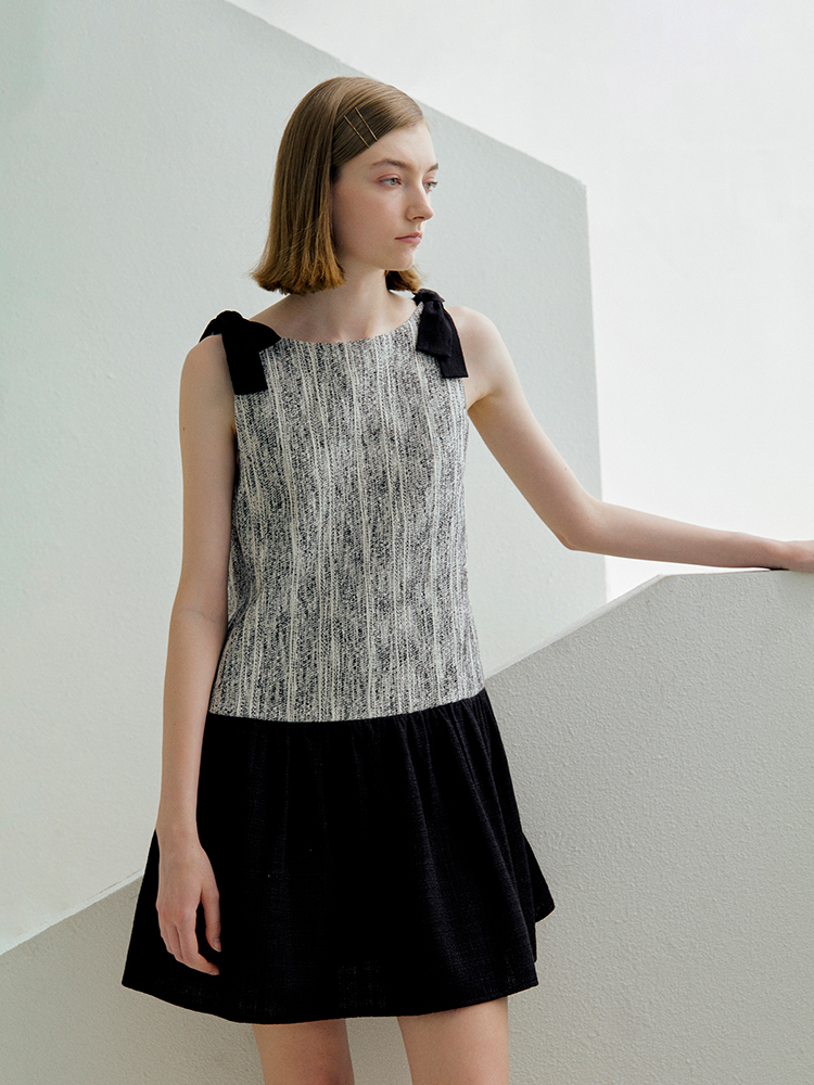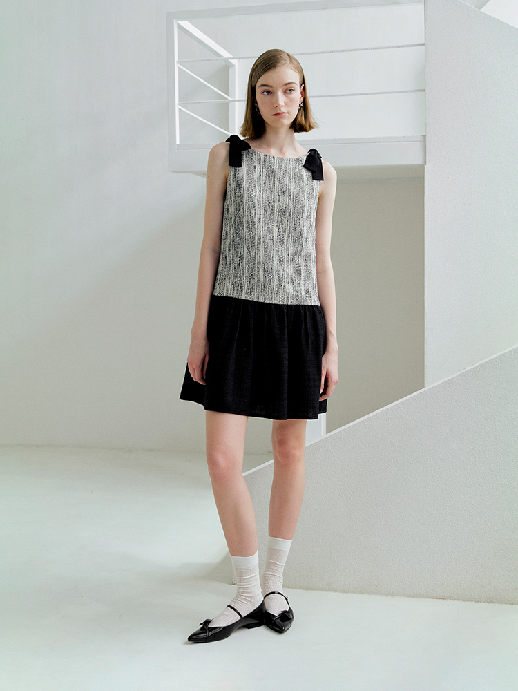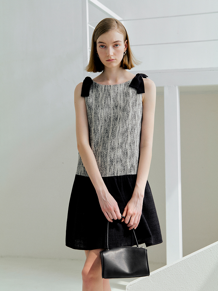 ForPoem 现货 25/SS原创设计前后两穿拼色蝴蝶结小香风连衣裙