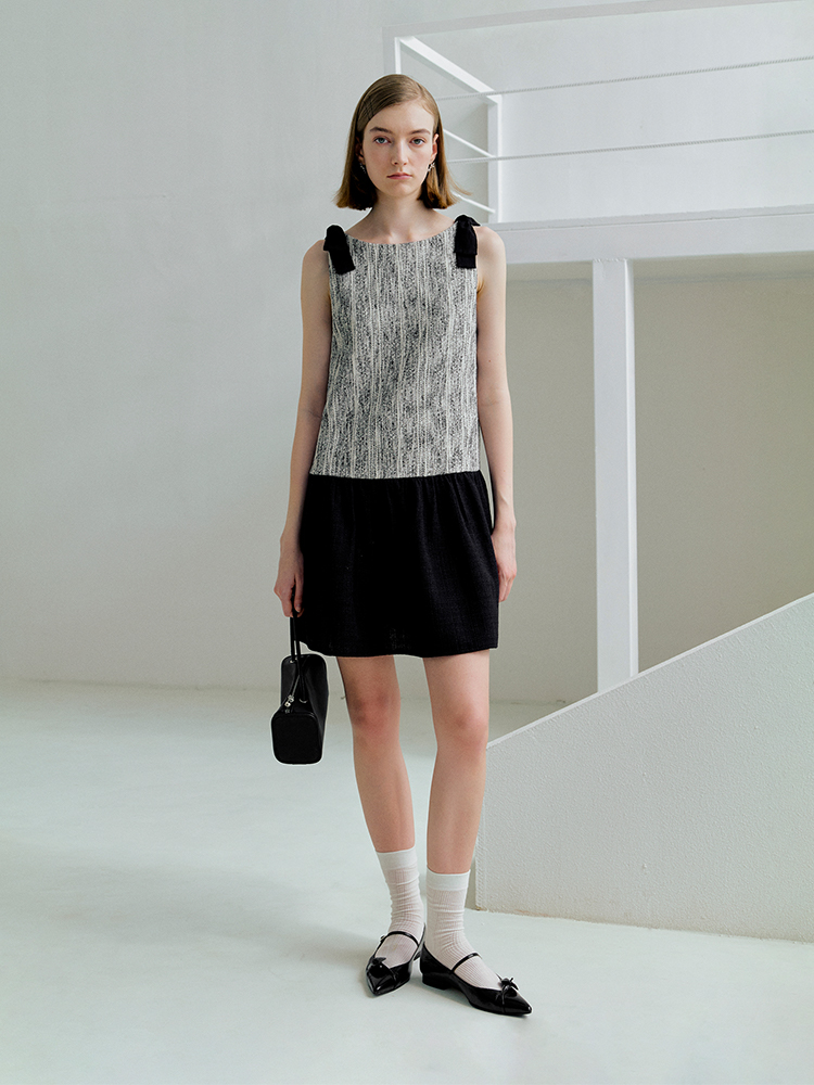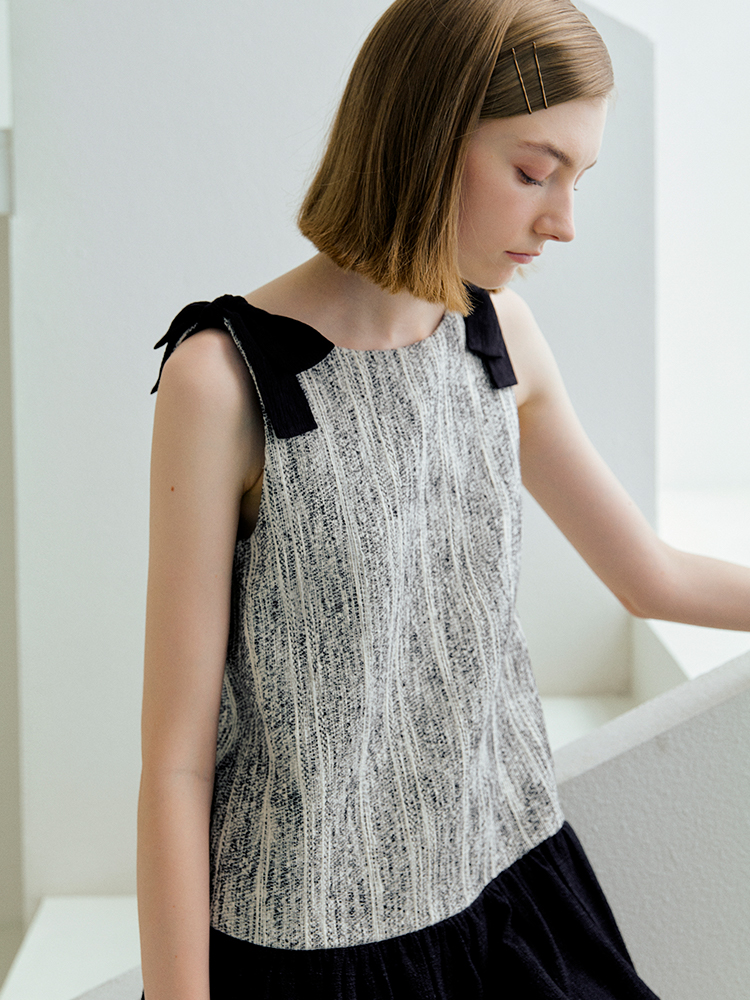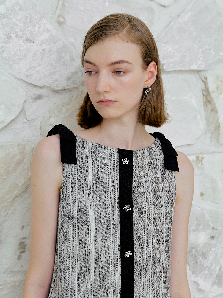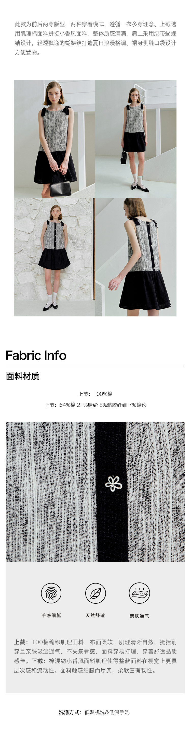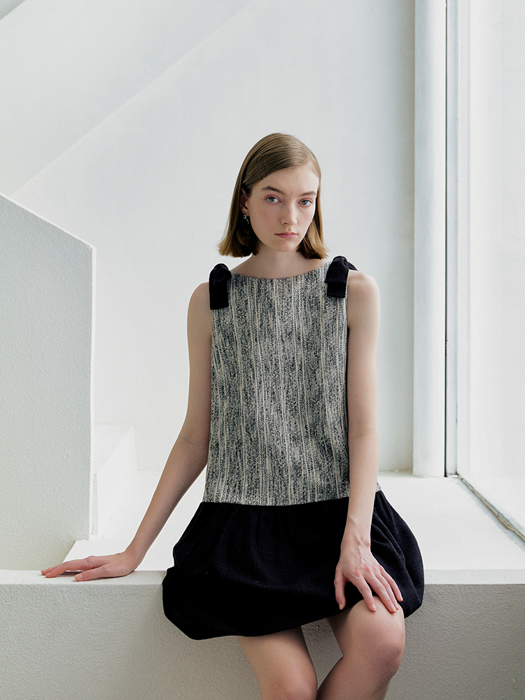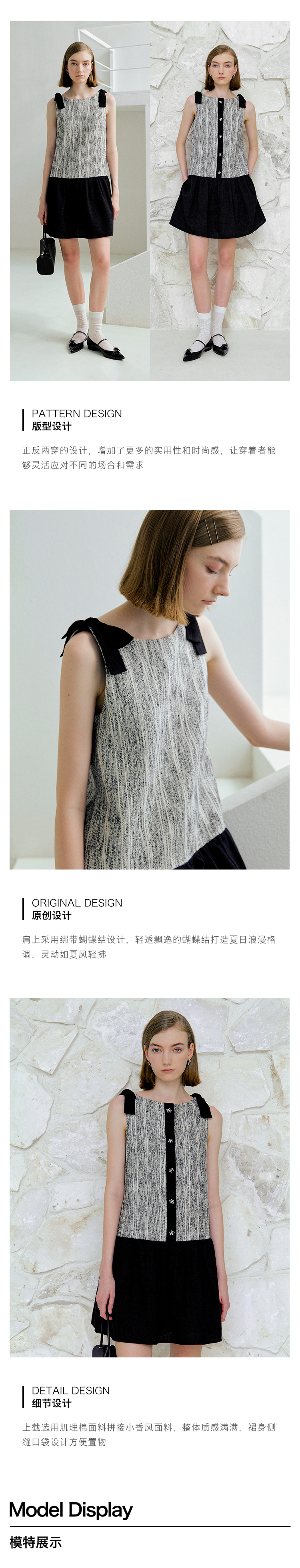 ForPoem 现货 25/SS原创设计前后两穿拼色蝴蝶结小香风连衣裙