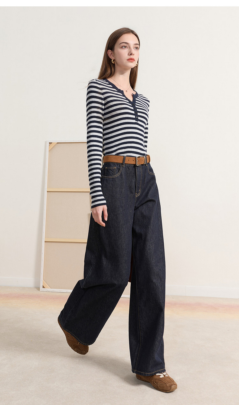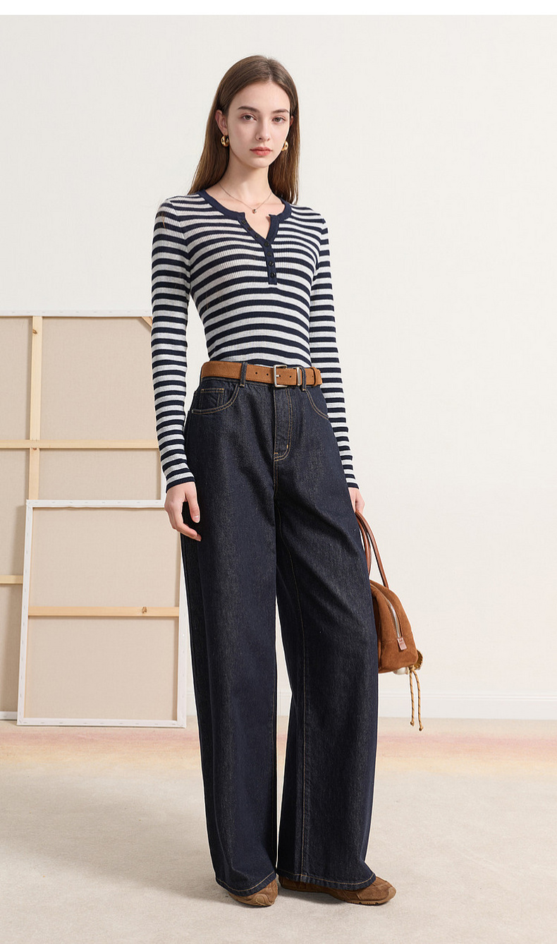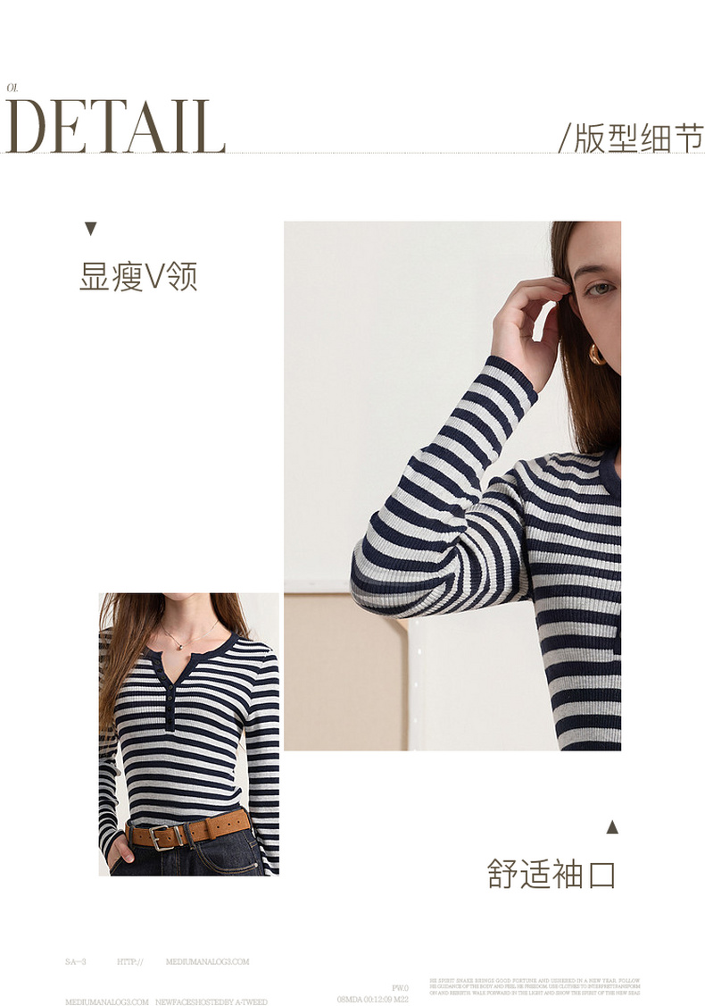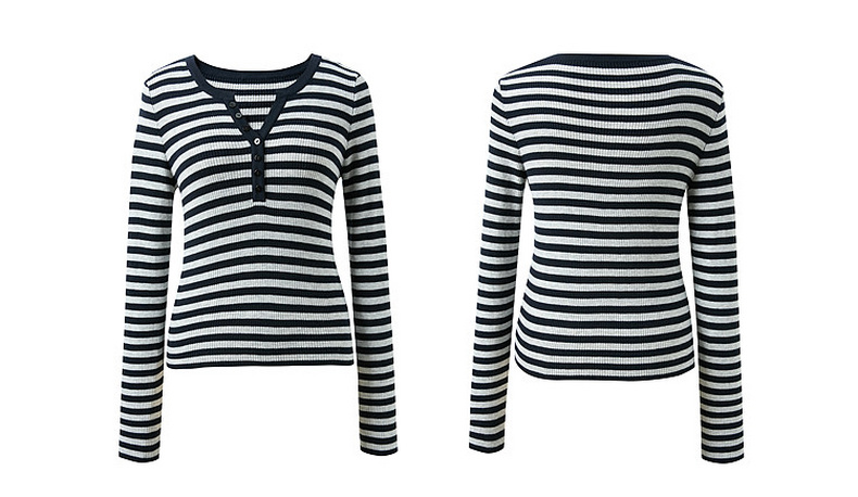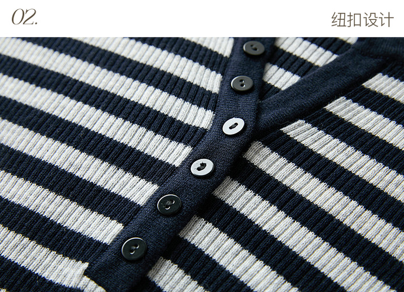 三彩2026春季新款条纹针织衫修身毛衫内搭简约长袖打底衫M