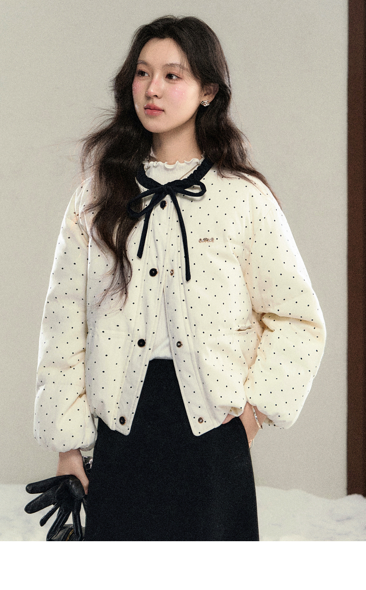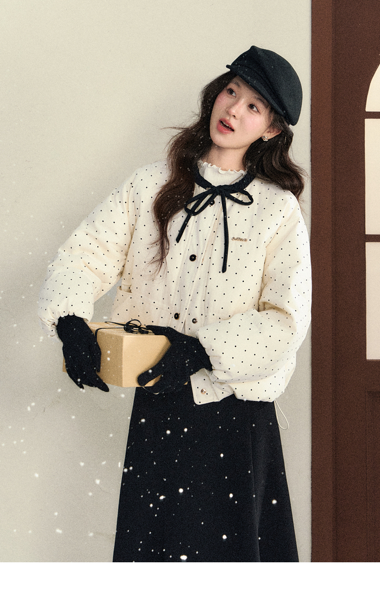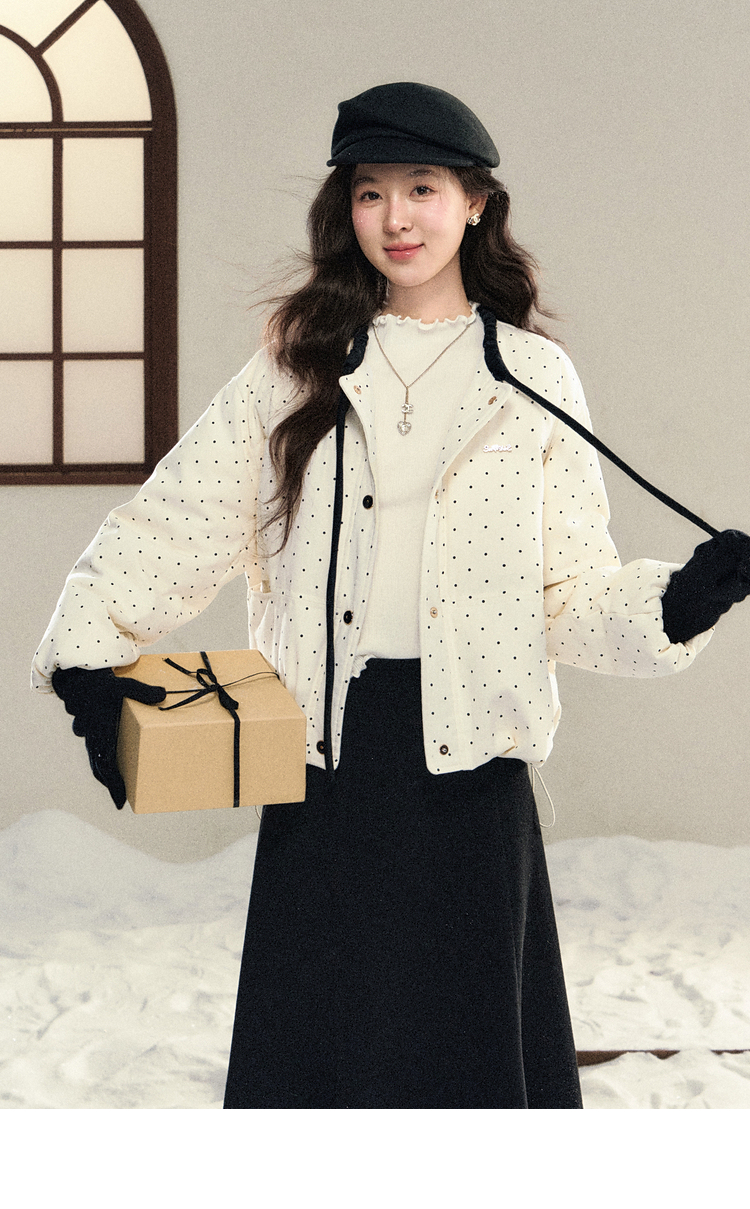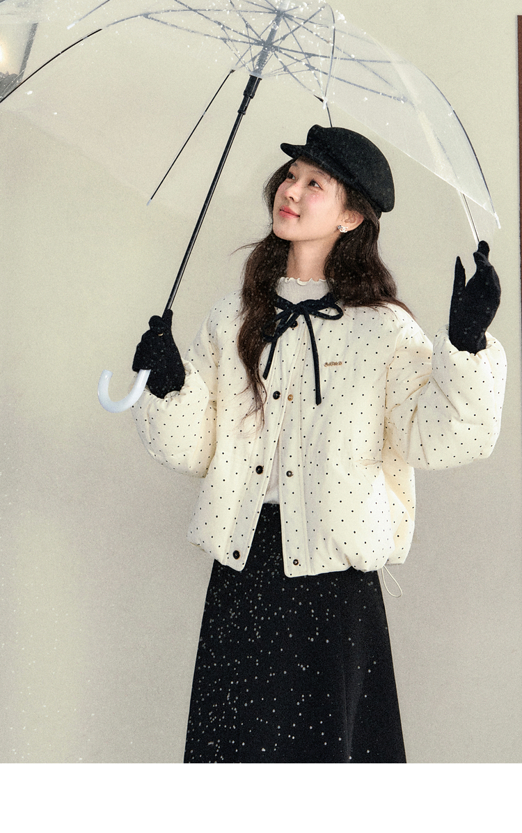 鹿向南「银河恋歌」90鸭绒波点减龄羽绒服女装冬季保暖小个子外套