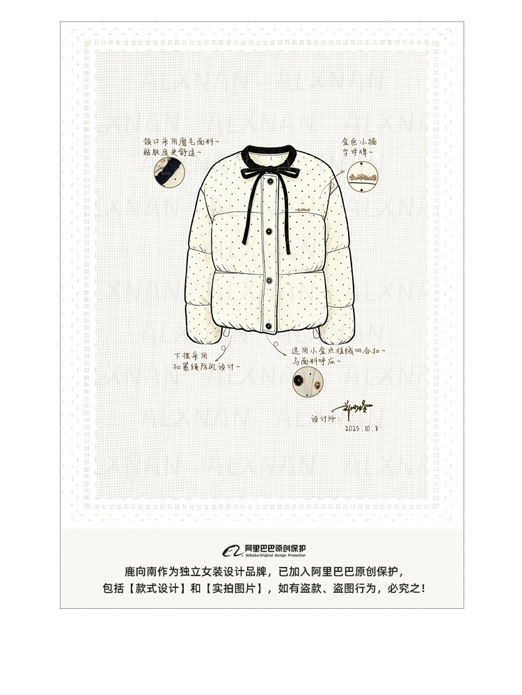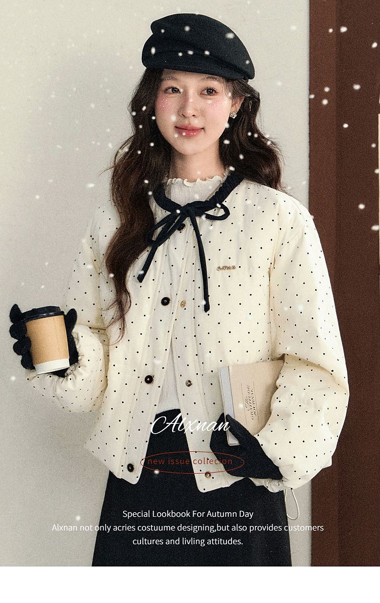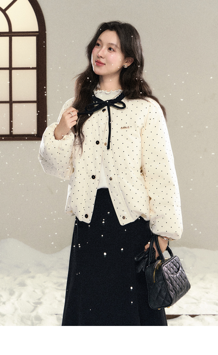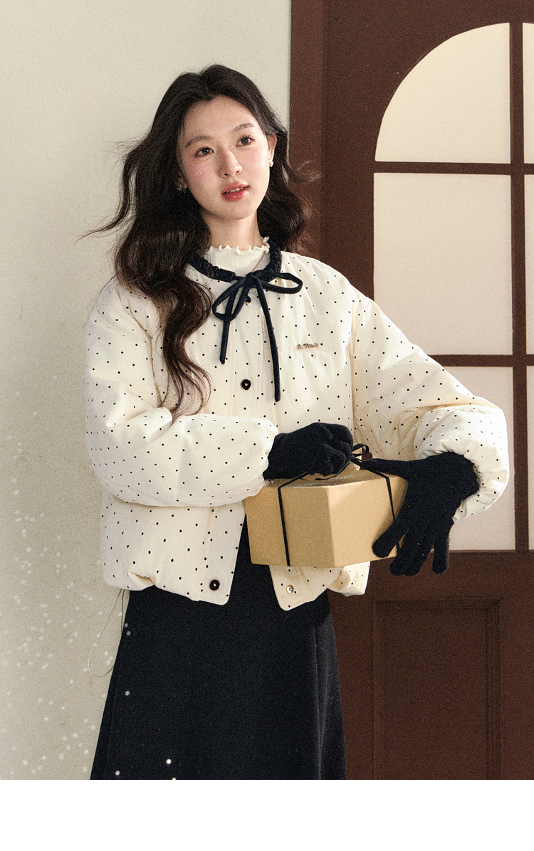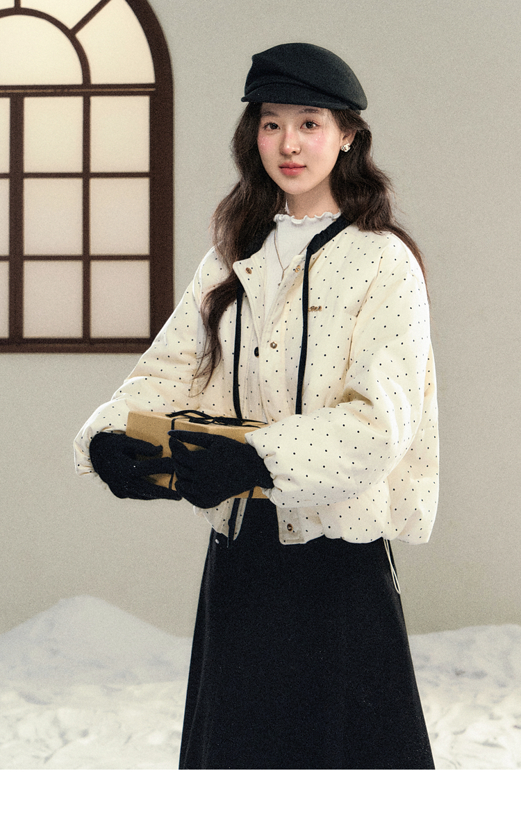 鹿向南「银河恋歌」90鸭绒波点减龄羽绒服女装冬季保暖小个子外套