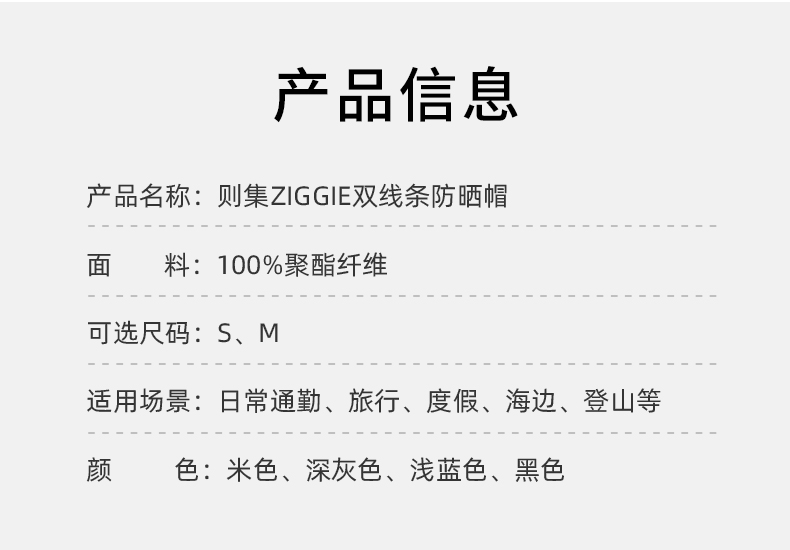 ZIGGIE双线条防晒帽V脸帽 UPF50+