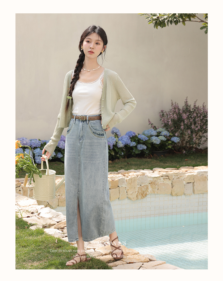 鹿向南「百搭神器」直筒开叉牛仔半身裙L53308