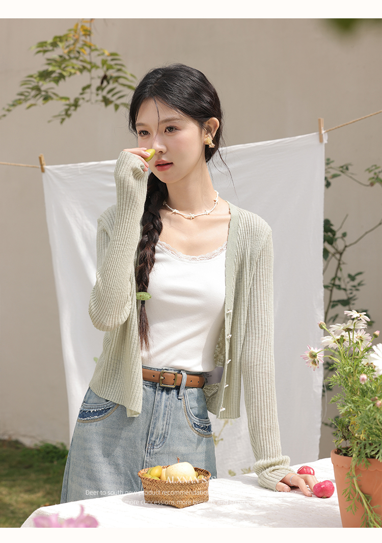 鹿向南「绿野信笺」假两件绿色长袖t恤女夏季巨好看修身打底上衣