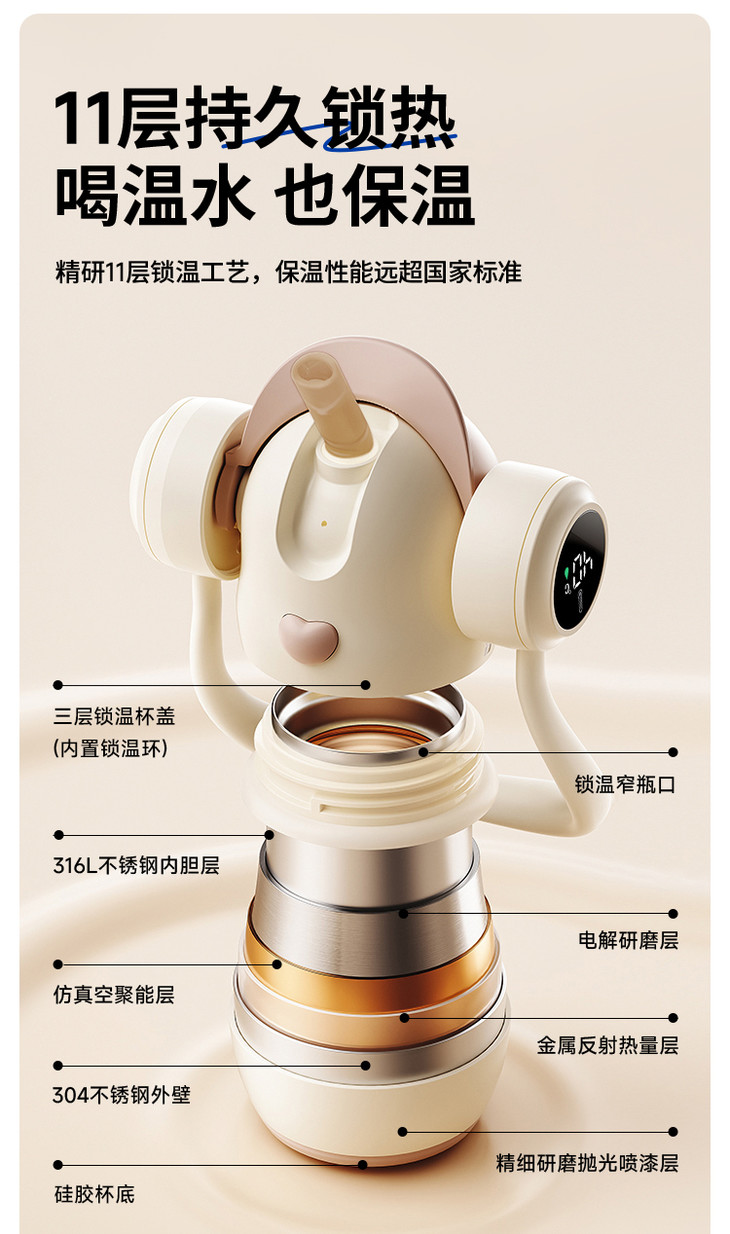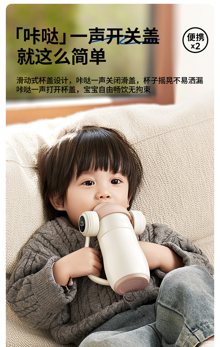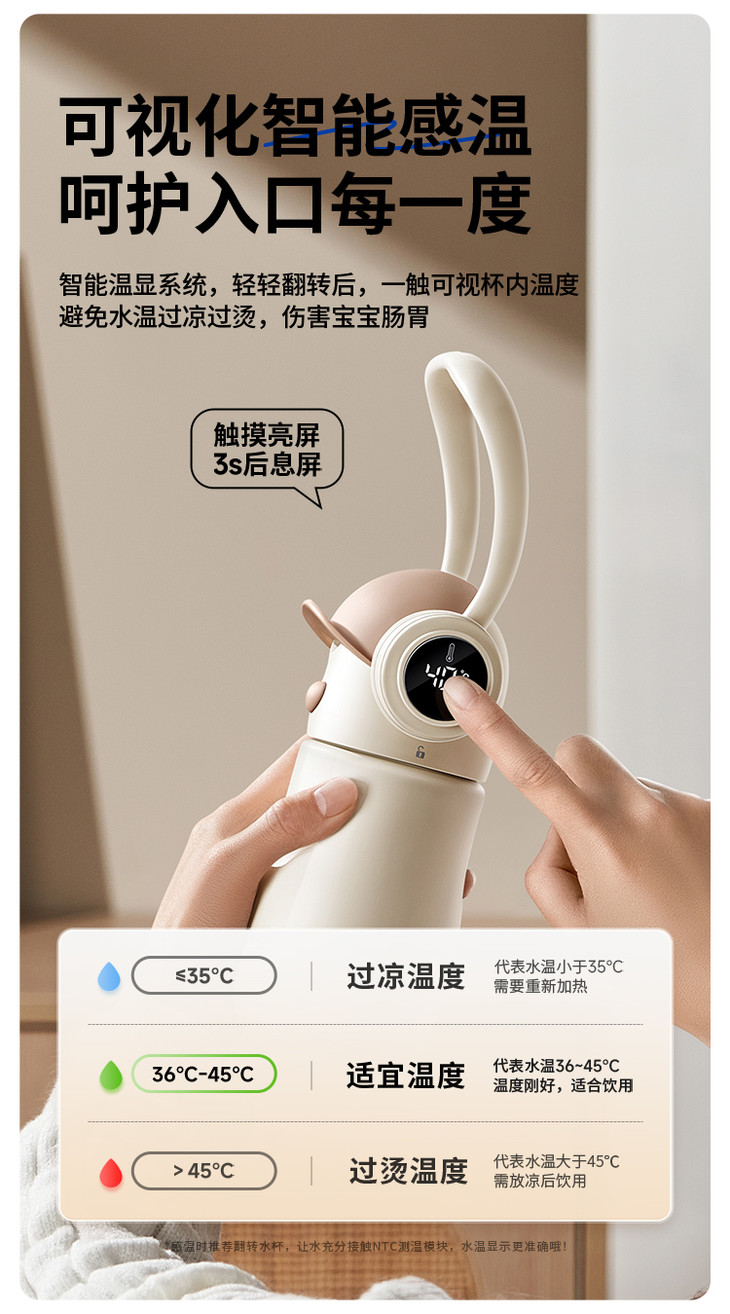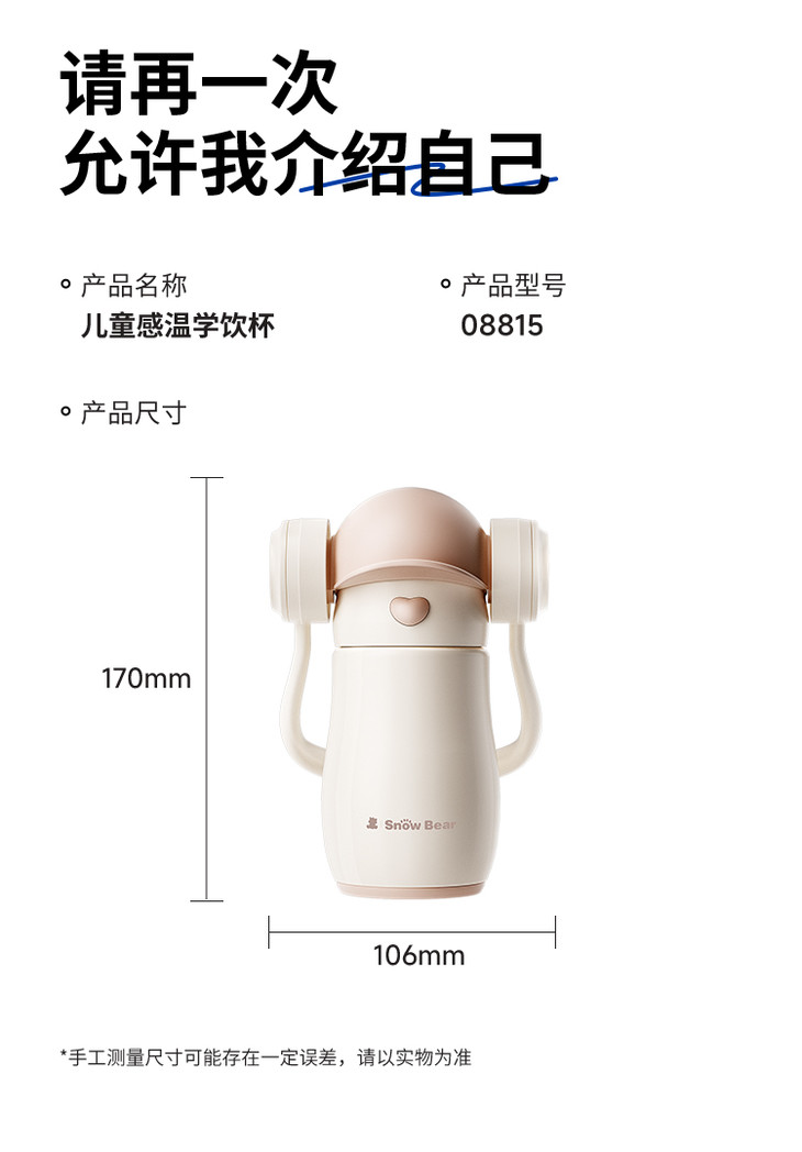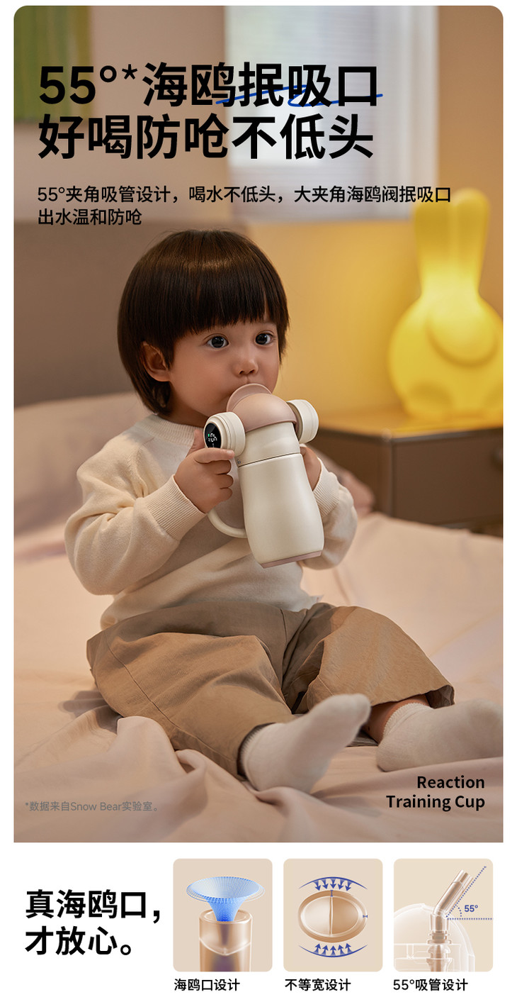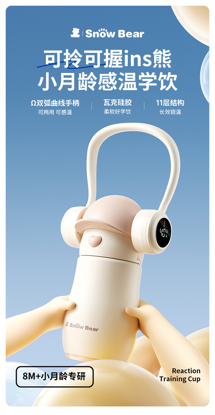 SnowBear ins熊宝宝保温杯婴幼儿学饮直饮儿童水杯保温吸管奶瓶数显